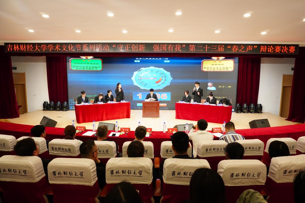 本网讯(校团委 供稿)5月8日,学校学术文化节系列活动暨“守正创新 强国有我”第二十三届“春之声”辩论赛决赛在第一教学楼举办,校党委副书记刘鹤出席现场。本届“春之声”辩论赛以“守正创新 强国有我”为主题,围绕国情社情、创新创业、吉林高质量发展、青年成长成才等内容。自4月3日初赛以来,历时1个月,14个学院进行了12场比赛。最终金融学院辩论队与国际经济贸易学院辩论队晋级决赛。决赛辩题围绕“新时代东北全面振兴...