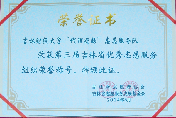 2014税务学院“代理妈妈”志愿服务活动荣获第三届吉林省优秀志愿服务组织
