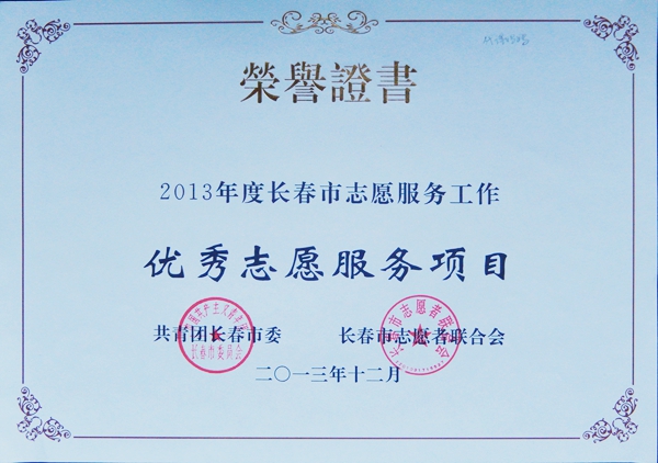 2014税务学院“代理妈妈”志愿服务活动荣获2013年度长春市志愿服务工作优秀志愿服务项目