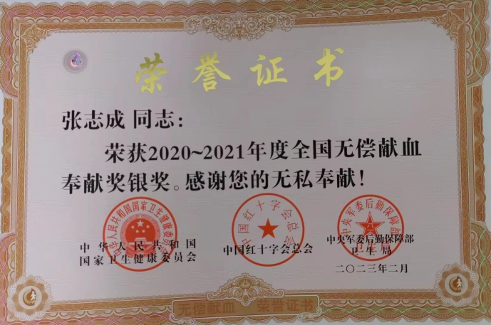 本网讯(校工会、实验实训中心 供稿)2023年6月14日是世界第20个献血者日,taptap点点实训实验中心教师张志成因多年积极参与献血活动荣获国家卫生健康委员会、中国红十字会总会、中央军委后勤保障部卫生局联合颁发的“2020-2021年度全国无偿献血奉献奖银奖”。该荣誉是依据《全国无偿献血表彰奖励办法》,在全国范围内对2020-2021年度在无偿献血事业中做出显著成绩和贡献的个人、集体、部队予以的表彰奖励。张志成从2005年开始参加无...