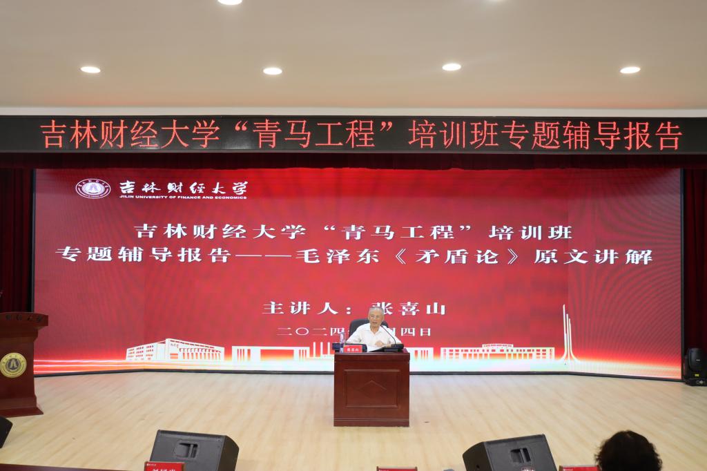本网讯(校团委 供稿)9月4日下午,学校在第一教学楼开展2024-2025学年度第一期青马工程培训班专题辅导报告——毛泽东《矛盾论》原文讲解,培训由校关工委主任张喜山主讲。张喜山从写作背景出发提出《矛盾论》是毛泽东思想的哲学基础,在中国哲学史上有里程碑意义。他指出,事物的矛盾法则即对立统一的法则是唯物辩证法最根本的法则,事物发展的根本原因在于事物内部的矛盾性;矛盾存在于一切事物发展的过程中,贯穿于每一事物发...
