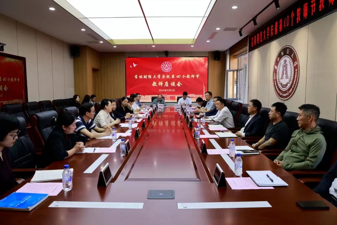 本网讯(党委教师工作部 人事处 供稿)9月5日上午,学校庆祝第40个教师节教师座谈会在综合楼第一会议室举行,校党委书记孙杰光,党委副书记、校长童猛,副校长祝国平,来自教学单位、学工系统、教辅单位的9名教师代表参加了座谈会。会议由副校长祝国平主持。座谈会上,公共管理学院蔡向东教授,税务学院张巍教授,马克思主义学院王晖教授,教师教学发展中心副主任孙亚南副教授,统计学院青年教师王际皓,国际交流学院青年教师王...