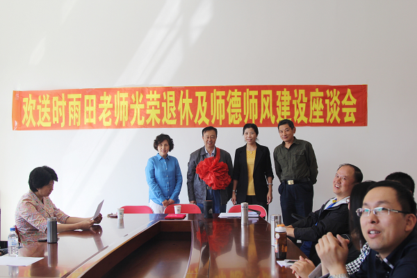 2013国际经济贸易学院召开欢送时雨田老师退休、师德师风建设及庆祝教师节座谈会