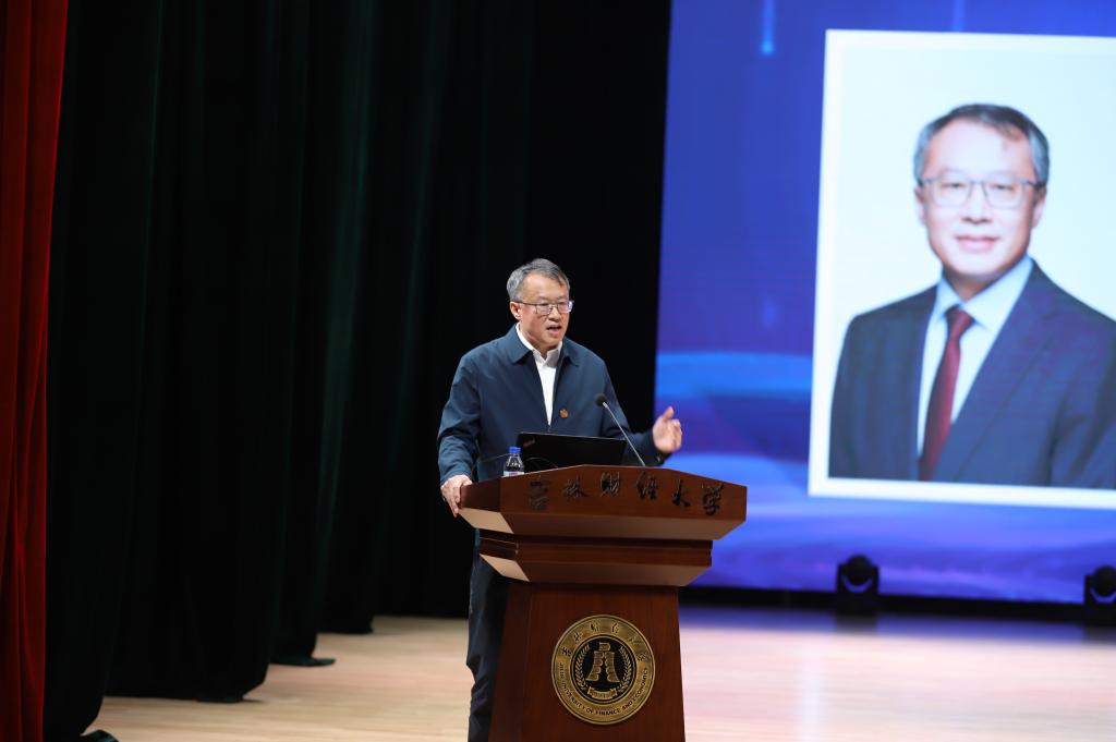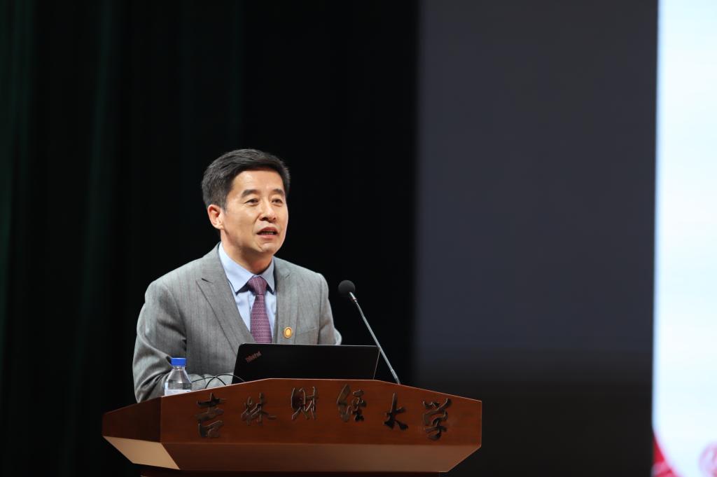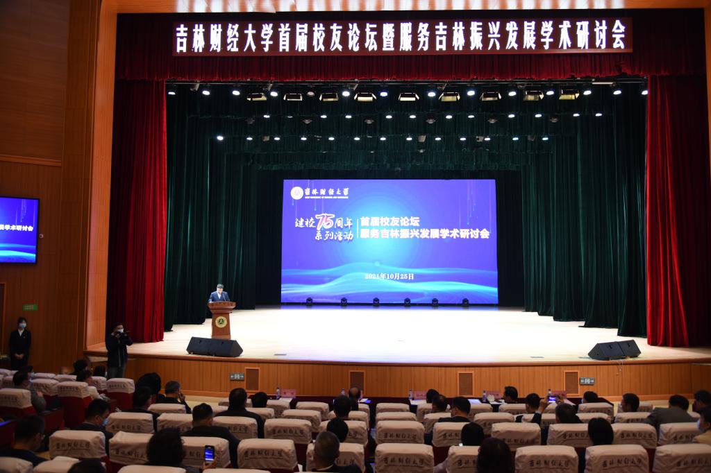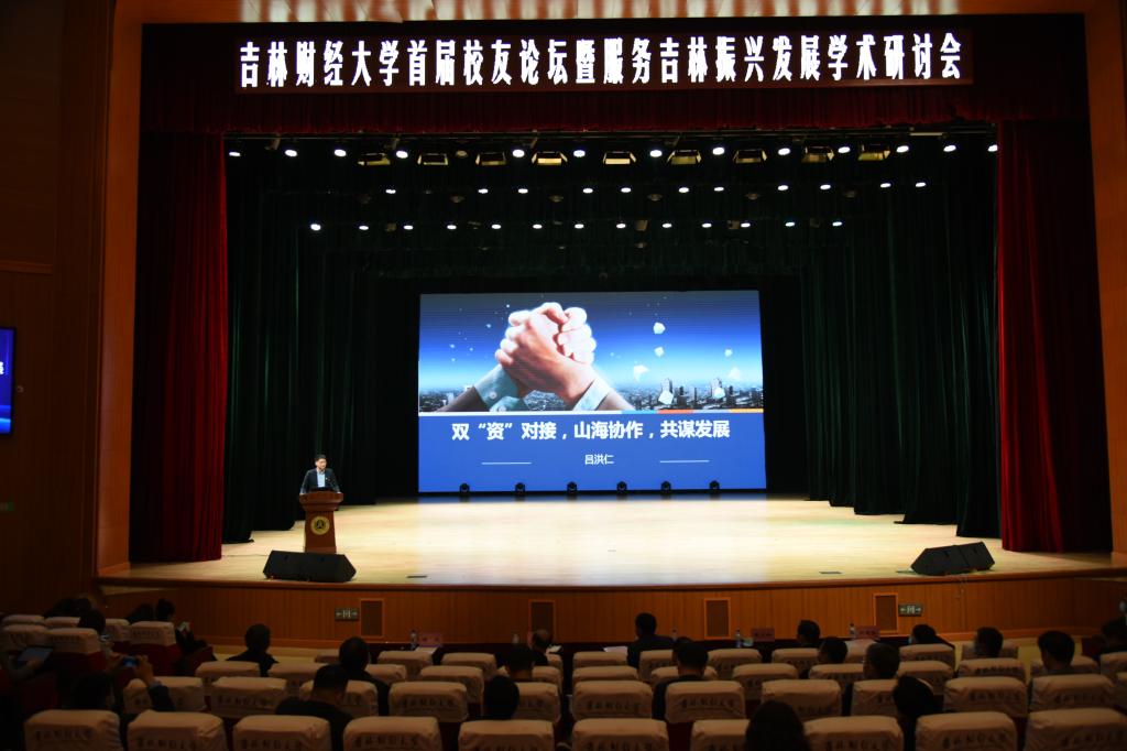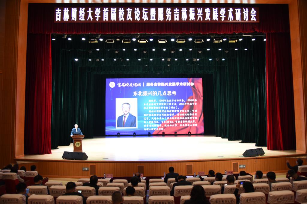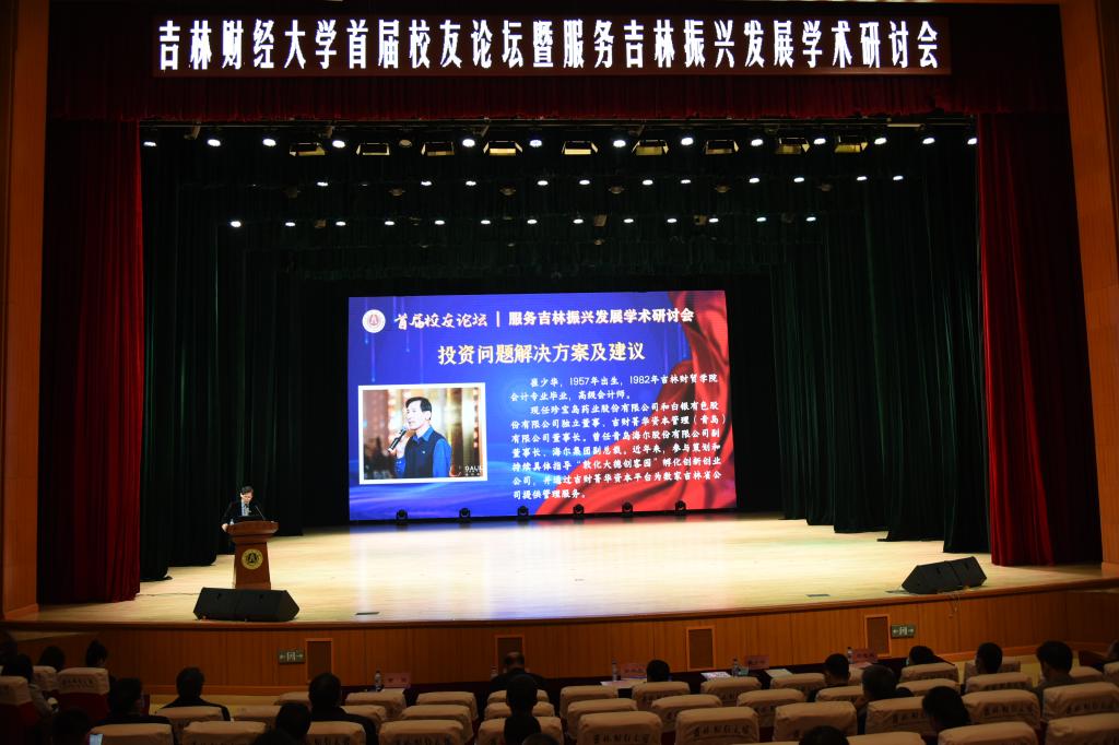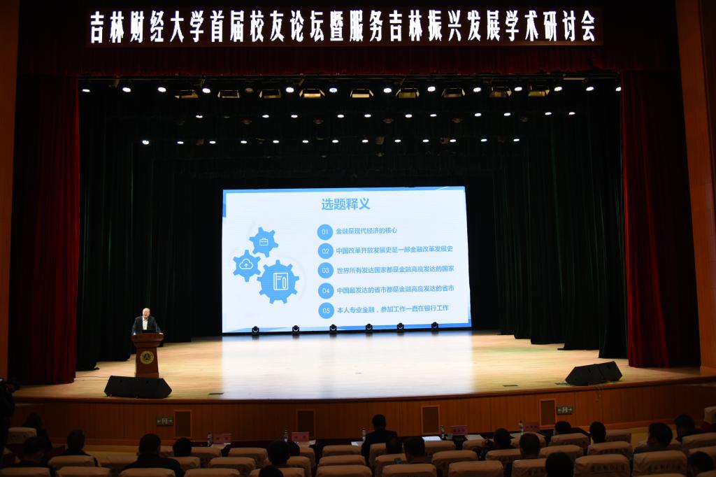 颁奖结束后,举行了“服务吉林振兴发展学术研讨会”校友主题报告会。重庆三峡银行原常务副行长雷友校友,青岛校友会会长、吉财菁华资本管理(青岛)有限公司董事长崔少华校友,中国银河金融控股公司、中国银河证券股份公司股权董事杨体军校友,中银国际控股有限公司董事总经理王耀辉校友,中审联合控股集团董事长吕洪仁校友分别作了主题报告。