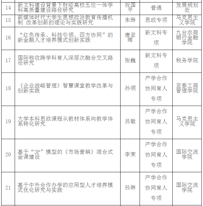 最终按照教育厅限额有16个学院的19项教育教学改革研究课题获得推荐申报吉林省2021年度教育教学改革课题,最终taptap点点有17项课题获得立项,立项率达89.47%。(产学合作协同育人项目直接申报不需校内评审)。