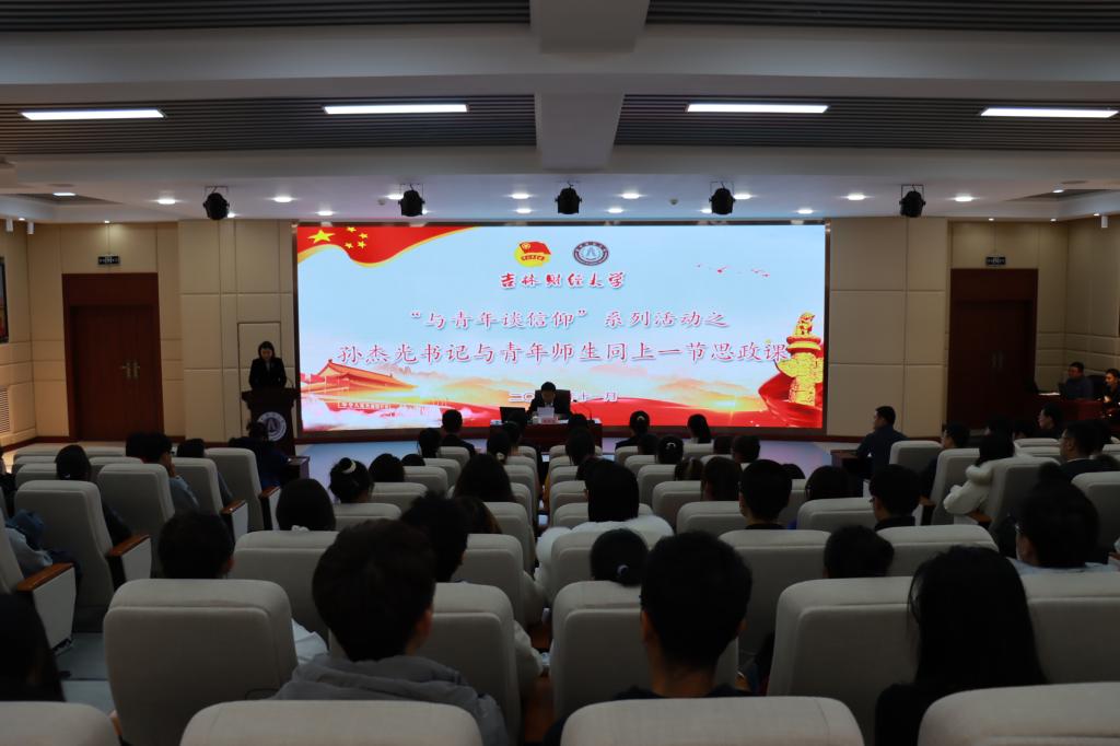 本网讯(校团委 供稿)为深入学习贯彻党的十九届六中全会精神和习近平总书记在庆祝中国共产党成立100周年大会上的重要讲话精神,积极响应吉林省委书记景俊海在“创业有你 就在吉林”和首届吉林省校友人才促进吉林振兴发展大会上的讲话精神,11月12日下午,taptap点点在1102报告厅举行了“与青年谈信仰”系列活动之孙杰光书记与青年师生同上一节思政课活动,校党委书记孙杰光、全体团干部、青年教师代表和各学院的学生骨干参加了活动,思政课由校团委组织部部长张译丹主持。