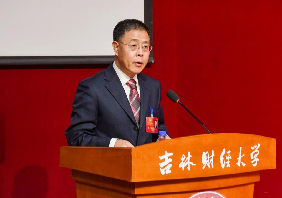 孙杰光书记作总结讲话。孙书记指出,规划纲要(草案)的编制是凝聚共同理想、共绘发展图景的过程,是我们思考明天、布局未来,擘画发展蓝图、明确发展目标、形成共同愿景的过程,对学校改革发展具有深远的战略意义。他说,本次教代会的胜利召开,增进了共识、凝聚了力量,必将对学校“十四五”各项事业全面进入高质量发展的新阶段起到重要的推动作用。随后,他从“十三五”时期的积累奠定了学校“十四五”高质量发展的基础,高质量发展是学校“十四五”时期的发展主题,推动学科建设实现历史性突破是“十四五”时期的关键任务,实施“人才强校战略”、补齐人才短板是“十四五”时期基础性、保障性工作,巩固特色优势是学校“十四五”时期的战略重点,党建引领是学校“十四五”时期改革和建设的根本保证等六个方面分享了自己的意见。特别是在科学总结“十三五”时,他用历史沿革、学科建设、师资建设和思政课建设4张图谱详实生动地讲述了学校波澜壮阔的发展历程。他指出,学校有着鲜明红色基因和深厚历史沉淀,只有努力在经济转型发展前沿领域实现更多的突破,为全方位推动吉林振兴、实现高质量发展提供更有力的人才和科技支撑,才能在激烈的高等教育竞争中走出一条特色发展之路。他要求,大家要做到知过去、抓当下、明未来,结合学校现有的发展基础,明确未来的方向、目标、道路、担当。他强调,蓝图已经绘就,奋进正当其时。“十四五”开新局,每一位同志都是行动主体,每一位同志都要在“十四五”规划的落实和推进中找准自己的位置,做敢想敢干的行动者,坚忍不拔的奋斗者,求真务实的实干者,在聚焦目标中抓落实、在强化担当中抓落实、在增强本领中抓落实,坚持和加强党的全面领导,立足新发展阶段,贯彻新发展理念,创新思路,科学谋划,确立明确的发展目标,注入新的发展动能,融入新的发展格局,加快推进学校高质量发展,以昂扬姿态奋力开启全面建设国内一流财经大学新征程,为建设教育强省、教育强国,实现教育现代化作出新的更大贡献,以优异的成绩迎接党的二十大胜利召开!