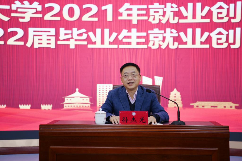 校党委书记孙杰光作了总结讲话。他首先对大家表示深深的谢意,他说,面对经济下行压力和疫情叠加冲击,全国高校都面临着严峻的就业压力。通过大家的共同努力,学校的初次毕业去向落实率和留省就业率都有了大幅提升,毕业生的就业质量一直保持较高水平。他指出,要提高政治站位,增强做好就业创业工作的责任感、使命感、紧迫感;要压实各方责任,确保明年的就业创业目标圆满完成;要强化激励机制,确保就业创业工作稳中提质、稳中求突破。他强调,要把理想信念教育放在首位,把省情国情教育、实践实务教育、创新创业教育、素质素养教育贯穿于教育教学和就业育人中,引导学生调整就业预期,了解社会发展现状;要加强就业创业工作的理论和实践研究,不断完善我们的人才培养体系,为国家和吉林经济主战场培养更多的高素质、高水平、应用型、创新型、复合型人才。