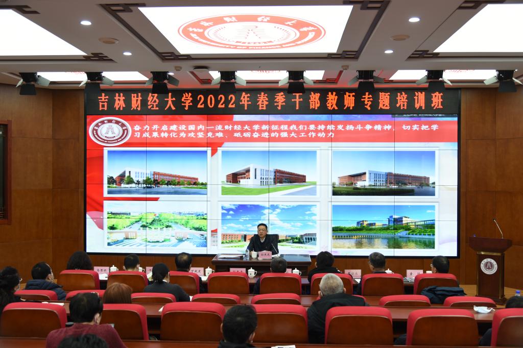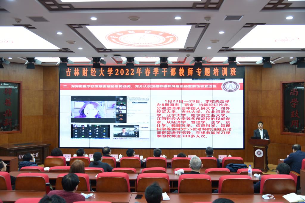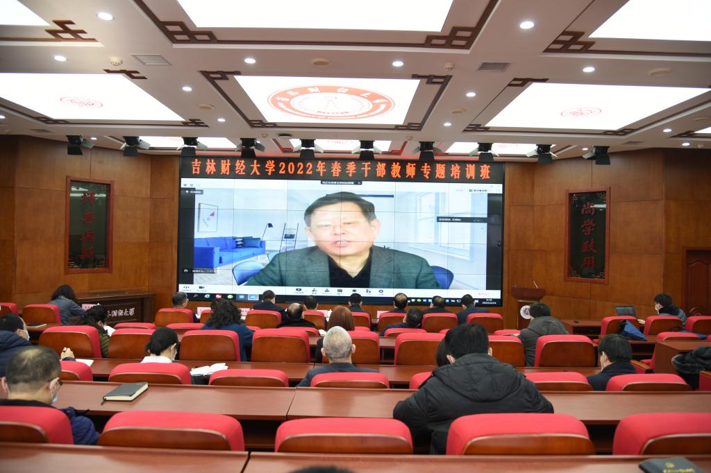 本次专题培训主题为:深入学习贯彻党的十九届六中全会精神和习近平总书记在省部级主要领导干部专题研讨班上的重要讲话精神,对党的十九届六中全会精神再学习、再领会、再贯彻,更好把握和运用党的百年奋斗历史经验,弘扬伟大建党精神,进一步加强和改进学校思想政治工作,强化师德师风教育,引导全校党员领导干部和全体教职员工牢固树立“四个意识”,坚定“四个自信”,坚决拥护“两个确立”,坚决做到“两个维护”,不断提高思想政治素质和理论水平,为加快建设国内一流财经大学提供思想保障。