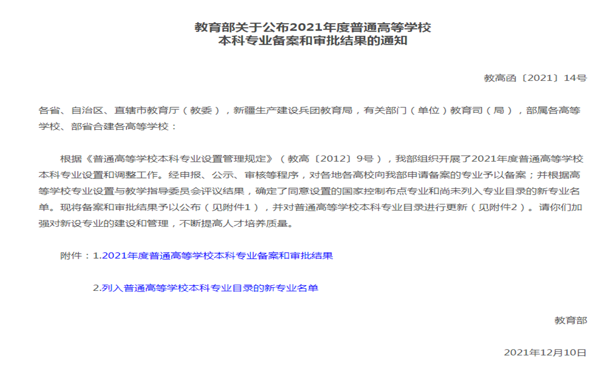 本网讯(教务处 供稿)近日,教育部发布了《教育部关于公布2021年度普通高等学校本科专业备案和审批结果的通知》(教高函〔2021〕14号),新增1961个专业点、撤销804个专业点,31种新专业列入《普通高等学校本科专业目录》。taptap点点备案专业“养老服务管理”、审批专业“国际税收”获教育部批准设立,第二学士学位专业“计算机科学与技术”、“法学”、“会计学”获批备案。至此,学校本科专业数量增加至39个,第二学士学位专业数量增加至9个。
