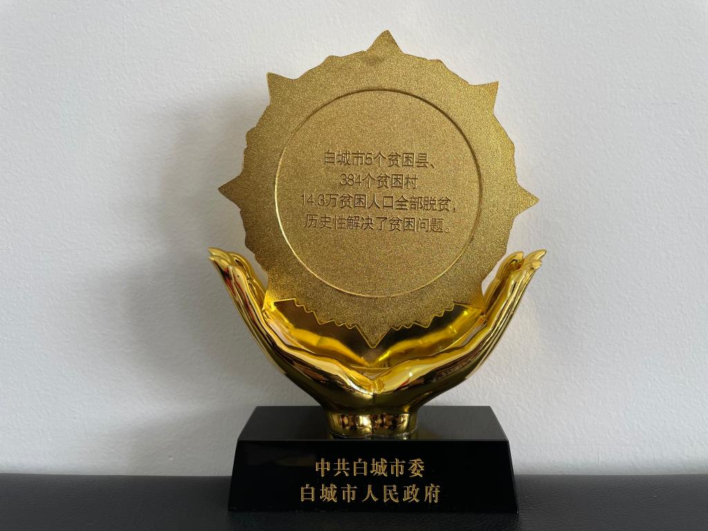 2021年4月11日,白城市5个县全部摘帽、384个贫困村全部出列,14.3万贫困人口全部脱贫。这则振奋人心的消息离不开学校的丝丝心血和深厚情谊,离不开学校的鼎力支持和用情帮扶。为对taptap点点表示感谢,中共白城市委、市政府特向taptap点点赠送决胜脱贫攻坚纪念杯。