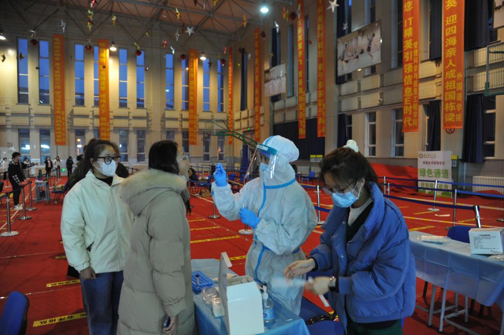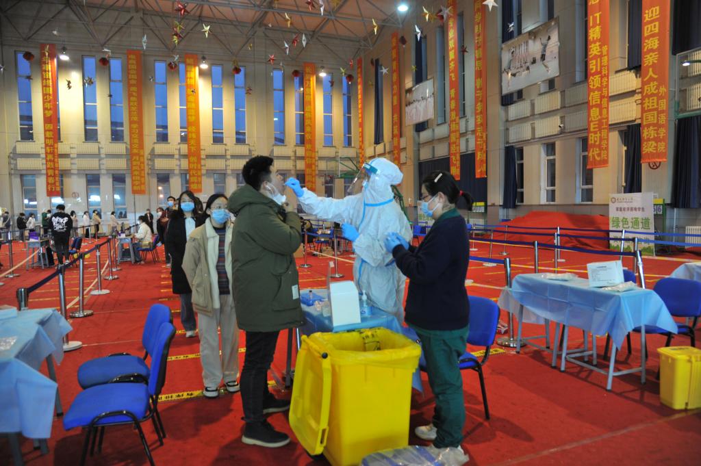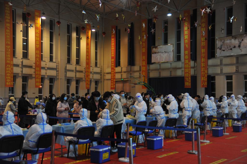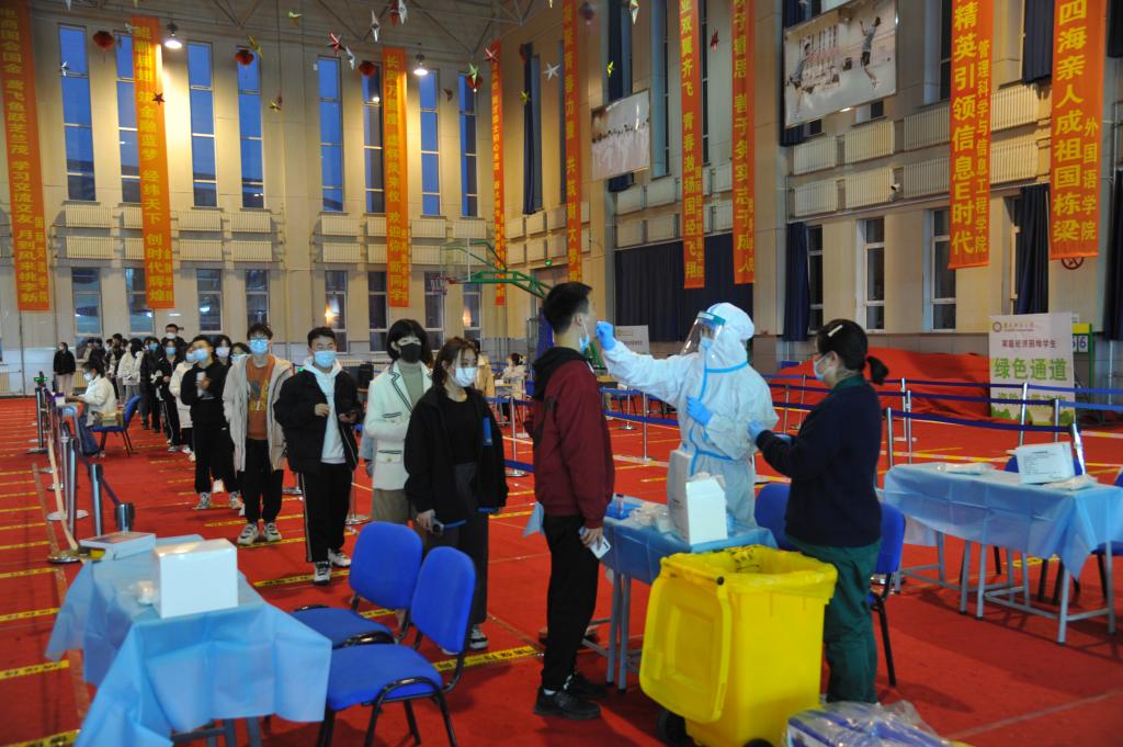 从晚上5点开始,直至11点多,在学校党委的精心组织下,在各部门的通力协作下,学校结合以往核酸检测工作经验,进一步优化各项工作安排、迅速落实具体工作,全校各单位紧密配合,严格按照要求,采取分学院、分时段的方式,高效有序地进行核酸检测。经过5个多小时辛勤工作,顺利完成了师生9370人次的核酸检测工作。3月9日早上7:30分,又开始为学校教职员工进行核酸检测。