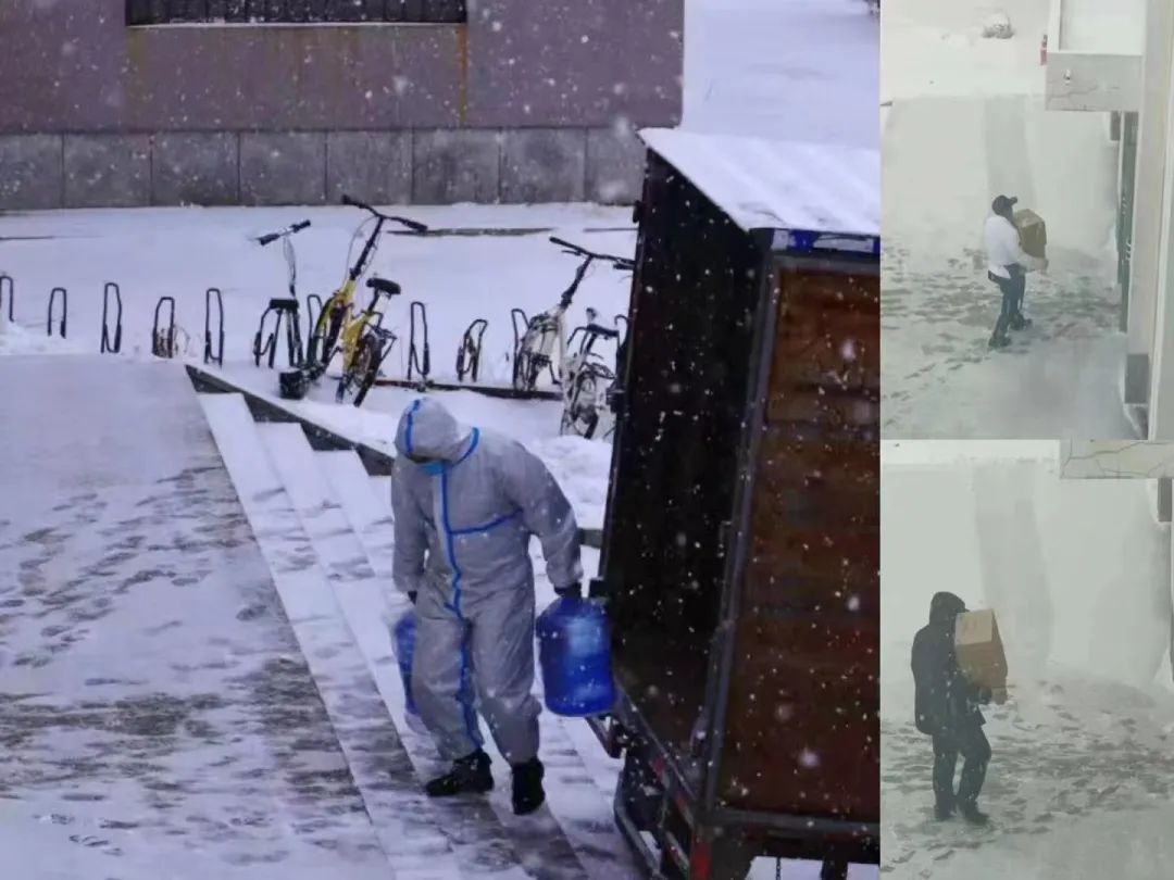 再看一下党委学生工作部留校的老师们,他们忙于统计数据、制定方案、接送转运学生、给学生送饭、做核酸,统筹全校学生工作有各种忙碌而繁琐的活儿。忙起来吃不吃饭呀几点吃饭呀也都顾不上了,每天晚上十点多开视频会议复盘今日工作,通宵或者凌晨两三点睡已是常态,忙完了只能蜷缩着睡在办公室又窄又短的沙发上。他们没有抱怨,没有不满绝不带着情绪工作,撑不住了就互相加油打气,永远面带笑容。学生管理科梁老师的孩子还很小很可爱,每天梁老师只能趁着吃饭的空隙和孩子视频匆匆说几句话,饭吃完了也就到了挂掉电话投入工作的时候,在孩子问“爸爸你什么时候回家呀”时,我猜梁老师的心中一定是说不出的心酸。像梁老师这样的人还有很多,他们在疫情来临时离开父母妻儿坚守在学校保护我们。我是长春本地学生,这段时间我所有焦虑都是来源于担心我的家人,担心在这物资紧缺的时期家里有菜吗?担心我家所处的小区是否安全呀?在我担心家人的同时,留校的老师们也一样担心校外的家人,但是他们选择舍小家为大家,他们承担着远比我们想象的更重的身心双重压力。