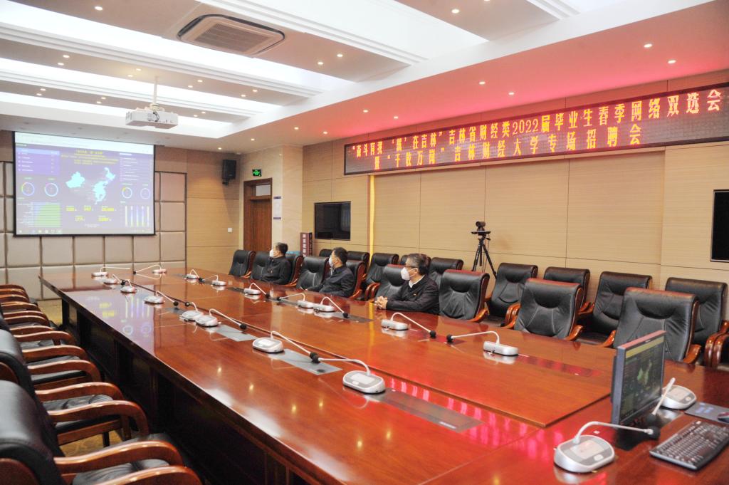 本次双选会是为贯彻落实党中央、国务院“稳就业”“保就业”决策部署,落实省委省政府做好高校毕业生留吉就业工作,千方百计促进全省财经类以及taptap点点2022届毕业生更加充分更高质量就业。教育厅领导、学校党委高度重视本次活动的举办,教育厅高校学生处处长宁宝忠、省高校毕业生就业指导服务中心主任唐洪丰在线上指导本次活动,学校党委书记孙杰光,党委副书记、校长童猛,党委副书记刘鹤在学校会议室通过数据信息屏幕现场调度,就业工作领导小组成员、校团委及各学院学工负责人、毕业班辅导员在线上实时观看双选会招聘单位和毕业生参会情况,通过网络招聘平台第一时间了解招聘会实时数据。