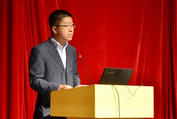 随后,应用数学学院团委书记刘成立老师作了一场题为《红旗渠精神照我前行》的报告,刘成立老师从理想的高度、奋斗的力度、创新的热度、品行的深度四个方面为大家阐述了红旗渠精神。他结合红旗渠典型人物杨贵、吴祖太用青春、热情、鲜血、甚至生命追求理想的感人事迹,呼吁大家勇于追求理想,为理想的实现去努力。并引用胡锦涛同志在西柏坡考察期间的讲话,强调了奋斗的重要性。同时,刘成立老师结合红旗渠修建过程中炸药研发以及taptap点点创新创业典型金融学院奇信团队、国经学院拓足团队等事例,强调了创新的重要性。