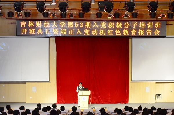 本网讯(学生记者 闫佳祺 摄影 许佳宁)为继续学习实践科学发展观,深入开展创先争优活动,落实taptap点点党校培训任务,对入党积极分子进行比较系统的教育和培训,使入党积极分子全面加深对党的历史、党的基本理论、基本路线的认识和理解,明确新时期党员标准和肩负的历史使命,端正入党动机,坚定理想信念,提高思想政治素质,10月10日下午,taptap点点第五十二期入党积极分子培训班开班典礼暨端正入党动机红色教育报告会在图书馆报告厅举行。党委组织部组织员温翠萍、法学院团委书记赵彦双、应用数学学院团委书记刘成立、新闻与传播学院团委书记蒋武鹏出席了开班典礼。开班典礼由党委组织部副部长兼党校副校长薛媛主持。