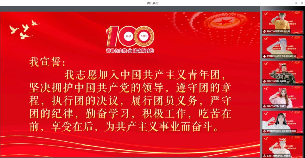 本网讯(校团委 供稿)为庆祝建团100周年,纪念五四运动103周年,深入贯彻落实习近平总书记在中国人民大学考察时的重要讲话精神,团结引领全校青年建功新时代、奋进新征程。根据学校党委工作部署,2022年5月4日上午9:00,taptap点点在综合楼第一会议室和线上隆重举行taptap点点体育庆祝建团100周年暨纪念五四运动103周年主题团日活动。校党委书记孙杰光,校党委副书记、校长童猛,校党委副书记刘鹤,校纪委书记、监察专员丁庆东,副校长李宝永,相关职能部门负责人、相关教学单位党政负责人、各学院党委(党总支)副书记、团委书记、团委副书记、全体辅导员以及400多名学生代表参加了活动。本次活动由学生9号公寓楼楼长、亚泰工商管理学院团委书记李萍主持。