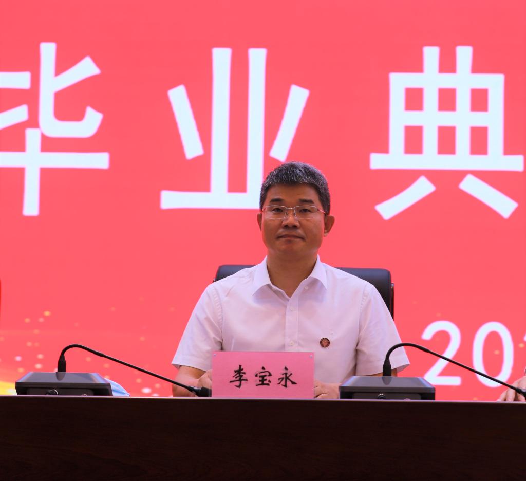最后,校党委副书记、校长童猛作了热情洋溢的致辞。他首先代表学校向即将毕业的2022届学生表示最热烈的祝贺,向辛勤培育毕业生的父母、老师致以崇高的谢意和敬意!童猛指出,2022届的毕业生在知识、能力、素质、人格等方面全面发展,大家共同见证了伟大祖国打赢脱贫攻坚战,如期全面建成小康社会,实现第一个百年奋斗目标,开启全面建设社会主义现代化国家、向第二个百年奋斗目标进军的新征程,共同经历了中华人民共和国成立70周年、建党100周年、建团100周年、学校第二次党代会等重要时刻。童猛希望2022届毕业生过大写的人生,在新时代“立德、立功、立言”:明德,要做到政治要强,心机要纯,脊梁要硬,心底要柔;崇实,要从小事做起,把简单的事、平凡的事做到不简单、不平凡;好学,要活到老,学到老,不停下学习的脚步。最后,童猛深情地说,愿同学们心中有爱,严明有方,赤城善良,明朗坦荡;愿大家心存感恩,结伴贤良,乘风破浪,展翅翱翔;相信同学们一定能不负时代重托,在不断奔跑中成就大写的人生,成为最好的自己。