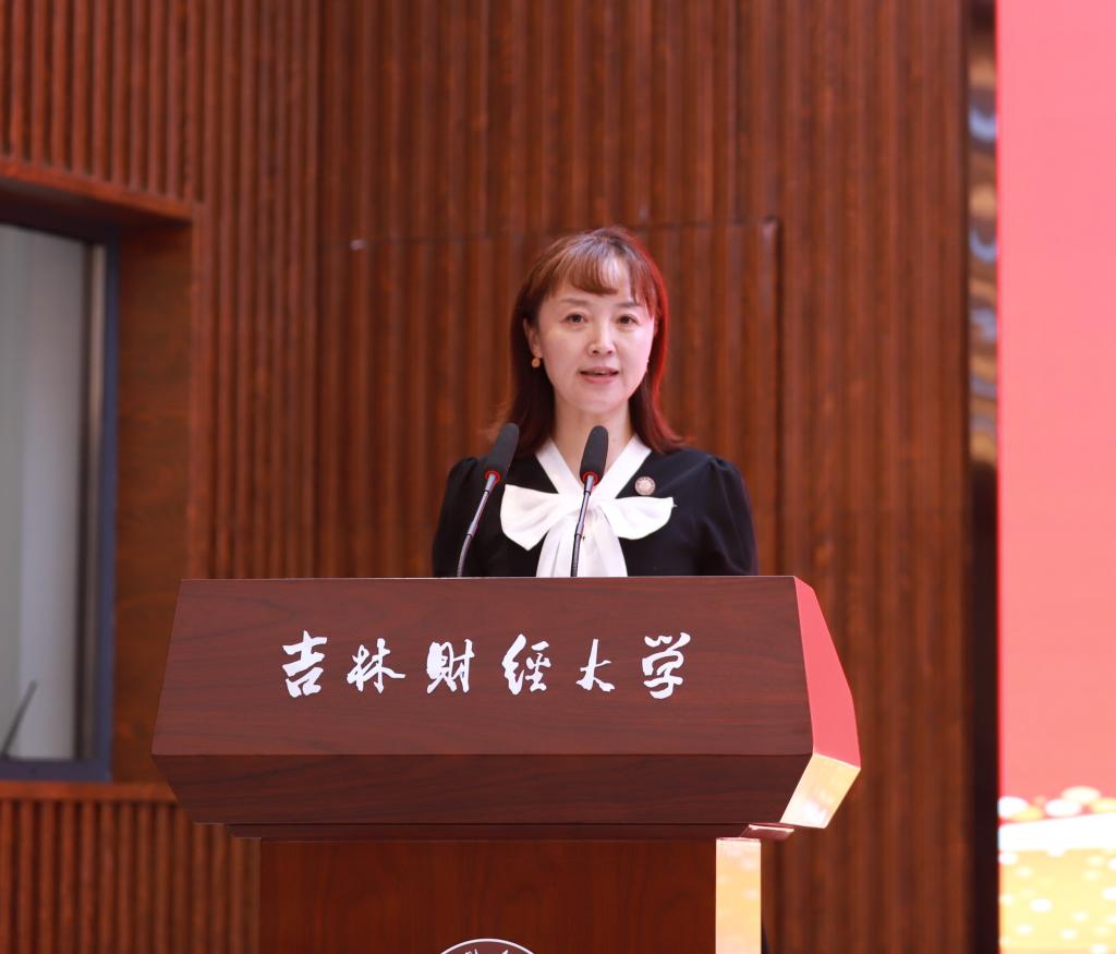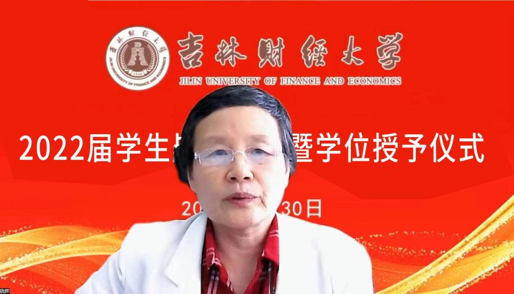 学校校友、吉林财贸学院会计系7813班曲晓辉在线上作了讲话。她表示,作为老学长,想与全体2022届毕业生分享16个字:满怀感恩,不辱使命,不负韶华,终身学习。曲晓辉指出,我们每个人的成长历程,都凝结着长辈的辛劳和师长的心血,是他们日以继夜燃烧着生命之火,照亮我们的锦绣前程。只有懂得感恩的人,才能够站得更高,跑得更快,走得更远,深刻的感受到幸福。希望大家以国家经济建设和社会发展为己任,为国家和民族、为世界和人类的发展,负起责任、勇于担当,努力贡献自己的智慧和力量。母校的发展,离不开校友的成就和支持,每位同学在各自岗位上的开拓、进取和成功,都在为母校添砖加瓦。愿我们以不同的方式,对母校做出支持和奉献。