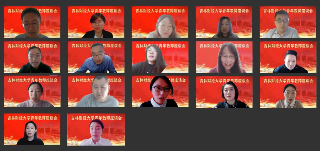 座谈会上,税务学院李美琦、会计学院张兰、金融学院张洁妍、亚泰工商管理学院李洪英、法学院吕楠楠、管理科学与信息工程学院靳宇宁、经济学院刘艳龙、公共管理学院李雪、外国语学院李婷、国际经济贸易学院闫克远、统计学院翟莉、应用数学学院李文金、新闻与传播学院赵丹丹、国际交流学院唐乐、马克思主义学院张爽、公共外语教研部赵书博和体育教研部徐莹等17位青年教师代表,围绕自己的入校入职经历、教师职业规划、教育教学改革以及感恩学校培养等主题踊跃发言,充分肯定了学校近年来改革发展取得的成绩,就学科建设、教学科研、个人成长和教师队伍培养培训等方面提出了许多宝贵建议。