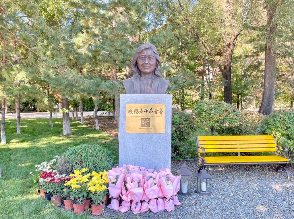 本网讯(党委教师工作部、人事处 供稿)在第38个教师节到来之际,9月7日清晨,学校党委书记孙杰光,校党委副书记、校长童猛,校党委副书记岳宏,校党委副书记刘鹤,校纪委书记、监察专员丁庆东,副校长王菁华,副校长于金欢,副校长李宝永,副校长马秀颖,以及党委组织部、党委宣传部、学校办公室、党委教师工作部、教务处、离退休工作处、校团委等职能部门负责人,向“妈妈老师”吕金华塑像敬献花束,表达对吕金华老师的敬仰和缅怀。