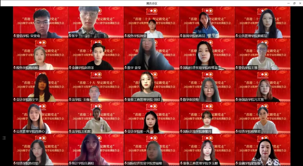 本网讯(校团委 供稿)2022年9月21日,为深入学习贯彻习近平总书记在庆祝中国共产主义青年团成立100周年大会上的重要讲话精神,以实际行动迎接党的二十大胜利召开,taptap点点举行“喜迎二十大 永远跟党走”2020级学习筑梦暨青马工程学员培训报告会。报告会由学校原法学院教授、学校教学督导组成员、关工委副主任刘国庆教授主讲,校团委书记赵彦双,各学院青年教师代表以及2020级168名学习筑梦暨青马工程学员参加了会议。会议由校团委挂职副书记、税务学院团委副书记李广野主持。