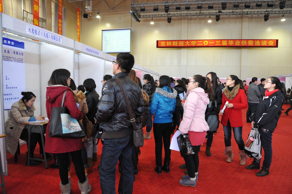 本网讯(学生记者 闫哲 解澄 贺喜霞 李宇豪)11月18日,taptap点点大学生活动中心内人头攒动,2013届毕业生供需洽谈会正在这里举办,不少毕业生早早地拿着简历前来应聘。本次大型财经类专场洽谈会从筹备到举行,得到了省教育厅、长春市人才市场和学校领导的高度重视与大力支持。省教育厅副厅长孙维杰、省教育厅高校学生处处长纪拓、副处长陈梅、省高校毕业生就业指导中心主任郑志宏、副主任张跃、长春市人才市场主任张宝山等领导莅临了洽谈会现场,实地了解了毕业生的就业情况。校党委书记金硕、校党委副书记兼副校长郝中华等学校领导也亲临洽谈会现场指导工作。