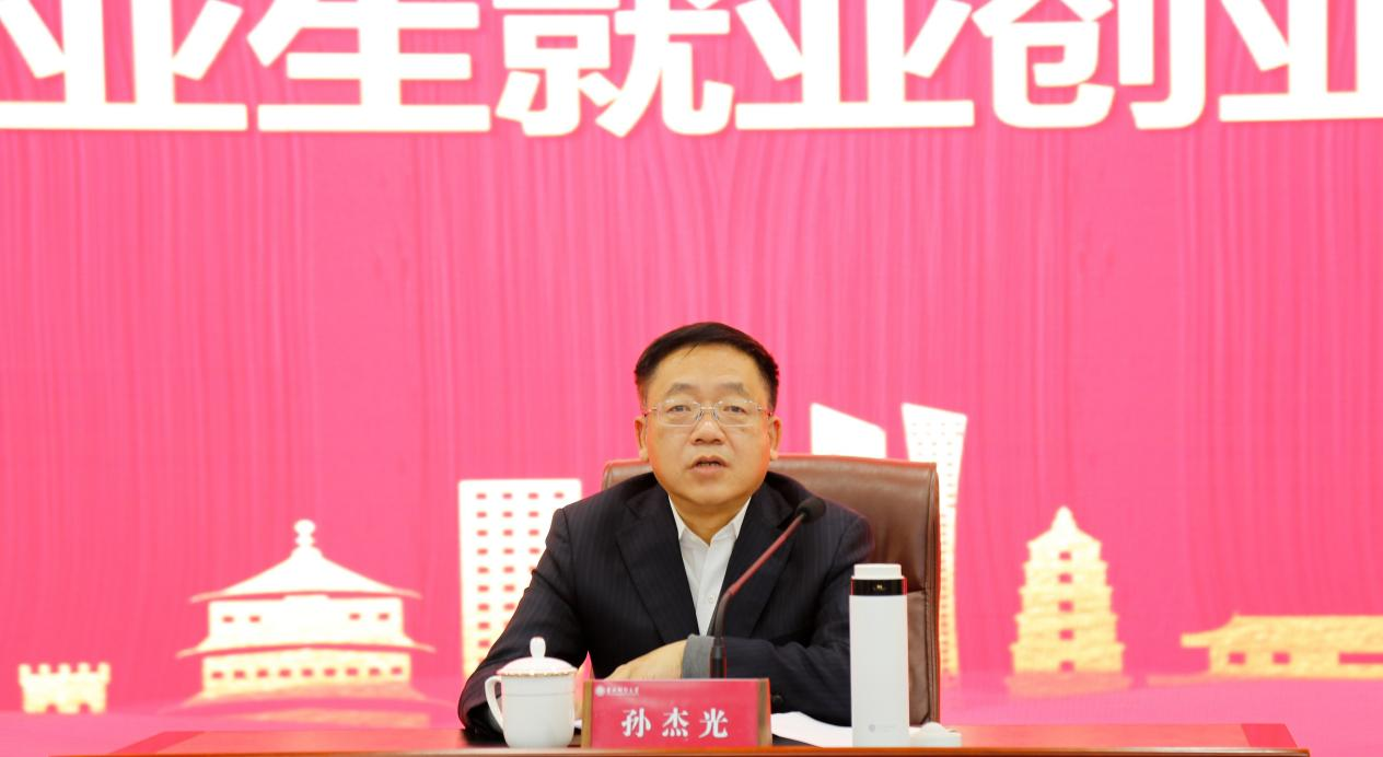 孙杰光对学校2023届毕业生就业创业工作进行了全面部署。他结合学习贯彻党的二十大报告中有关实施就业优先战略、高质量充分就业等重要论述精神,就贯彻落实好教育部《关于做好2023届全国普通高校毕业生就业创业工作的通知》精神,提出了五个方面意见:一是要提高政治站位,深刻认识做好毕业生就业创业工作的重大意义,不断增强政治判断力、政治领悟力、政治执行力,把思想和行动统一到党的二十大精神和党中央决策部署上来,以更高的标准、更大的力度、更实的举措,为毕业生更高质量、更充分就业创造更好条件;二是要加强组织领导,完善“学校党政统一领导,职能部门统筹协调,学院具体落实,全校师生共同参与”的运行机制,打造全员抓就业、促就业工作格局;三是要强化资源开发,更大力度开拓市场化社会化就业渠道,要将“访企拓岗”持续推向深入,推进校园招聘市场建设;四是强化思想引领,构建就业育人大格局,要把就业教育、就业指导全面纳入大学生思想政治教育体系,贯穿于人才培养全过程,推进“招培就联动”,持续打造“四个融入、五育并举”人才培养新模式和“政行企校友”协同育人新机制,引导毕业生到吉林经济主战场和国家需要的地方建功立业;五是要强化就业指导服务,精准开展困难帮扶,要做好生涯教育和就业实习实践,确保每一个困难学生都能得到有效帮助。