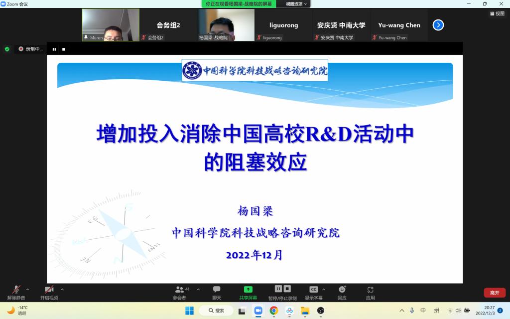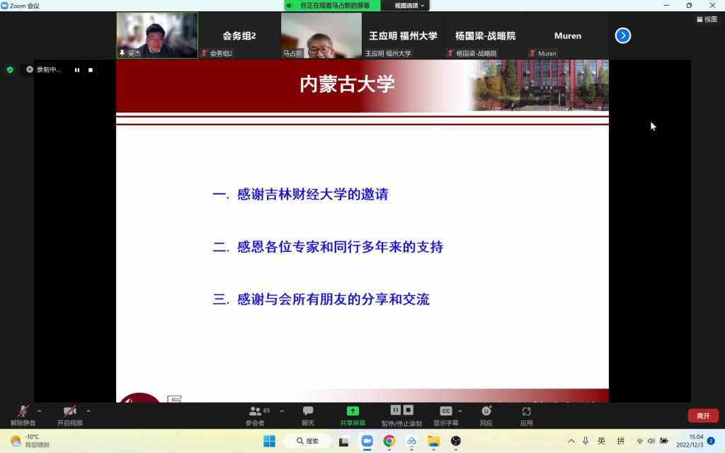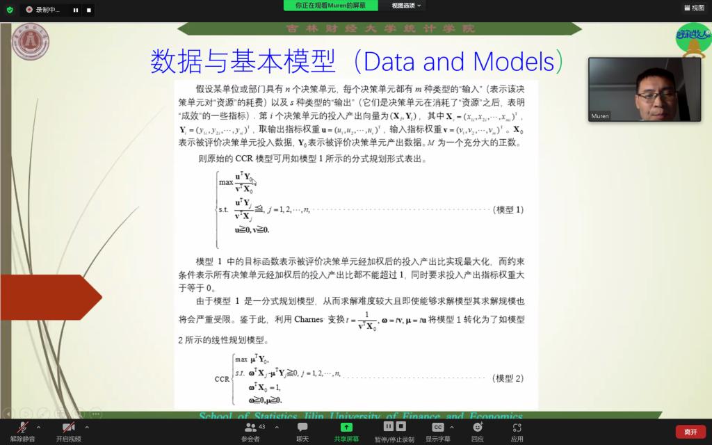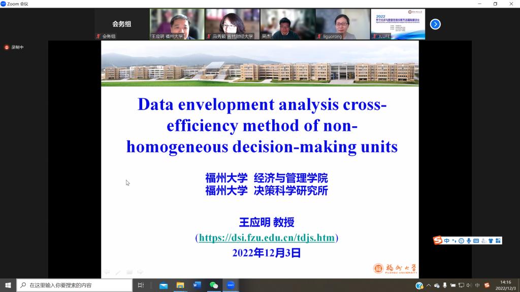 主题报告第二阶段,以色列巴伊兰大学Alex Smolyak博士作了题为“COVID19时期封锁与流动性降低对意大利经济所造成的影响”的报告,他认为限制流动性是COVID19大流行期间广泛实施的一项重要的非药物干预措施,并利用渗流理论和网络科学的方法,研究了其显性和隐性影响。英国萨里大学Yu-Wang Chen教授作了题为“知识和数据驱动的决策制定”的报告,他认为商业等决策极具挑战性,决策者的知识对于作出明智的决策非常重要,而且数据驱动决策得到了越来越广泛的认可,并向大家阐明了如何聚合数据和知识来支持业务决策。木仁教授作了题为“排序数据包络分析方法”的报告,他提出在优质资源紧缺的背景下往往仅有少数一部分群体会分得资源,传统数据包络分析方法因未考虑被评价决策单元的最高排序问题,从而并不适用于此类资源分配问题中的最优权重确定问题,鉴于此引进了一个能够确定被评价决策单元最高排序、最低排序和指定排序的最新模型,并通过实例检验了模型的理论与现实价值。杨国梁教授作了题为“加大对中国高校R&D活动的投入,消除拥堵”的报告,他指出近年来中国R&D的投入快速增长,引发了对中国R&D活动过度投入的担忧,而识别和测度阻塞效应能够帮助决策者了解过度投入状况。李国荣教授作了题为“中国数字经济发展水平和效率的统计测度”的报告,她构建了包含3个一级指标、19个二级指标的指标体系,分别采用TOPSIS法、DEA规模效率与技术效率模型、高斯核密度估计方法对数字经济发展水平、发展效率、动态分布及演进趋势进行了实证研究。