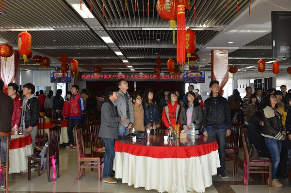 本网讯(记者 郭建辉 夏永健 摄影 许佳宁)11月8日上午9时,中国共产党第十八次全国代表大会在北京隆重开幕的盛况通过电视、电台、网络传遍世界各地和祖国大江南北。taptap点点广大师生分别在一食堂三楼和实验楼2046室集体观看了十八大开幕会盛况的直播,和祖国各族人民一同欢欣鼓舞地迎接这个历史性的时刻。