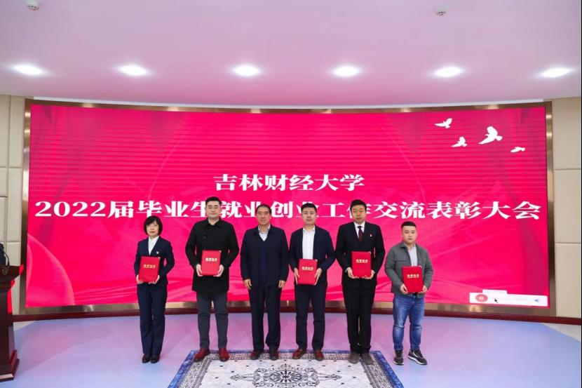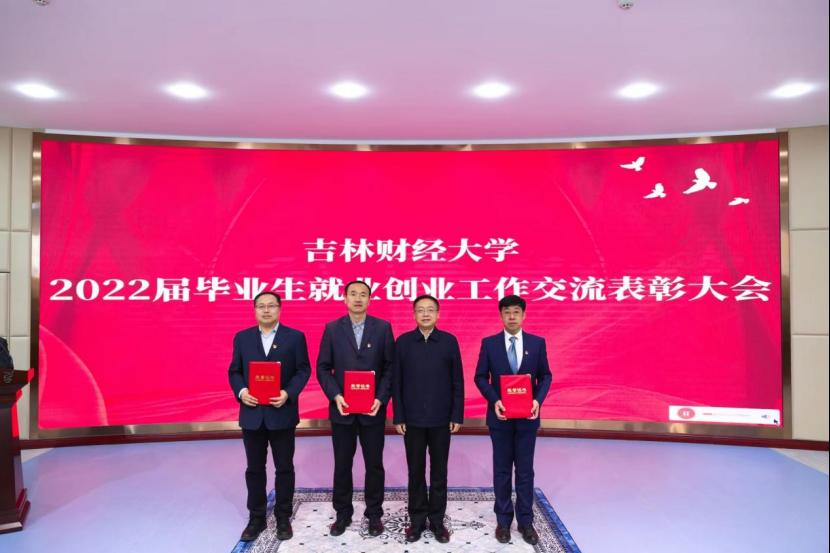 校党委副书记刘鹤宣读了《关于奖励2022届毕业生留省就业工作绩效达标学院的决定》,校党委书记孙杰光,党委副书记岳宏,纪委书记、监察专员丁庆东,副校长于金欢为留省就业工作绩效达标的学院颁发奖状。