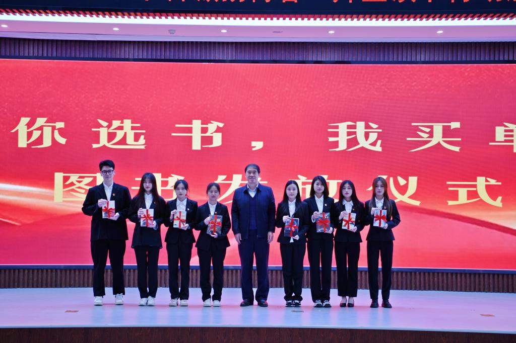 岳宏向学生代表发放了由中共吉林省委宣传部主办、taptap点点与长春市新华书店联合承办的“你选书,我买单”图书礼包。