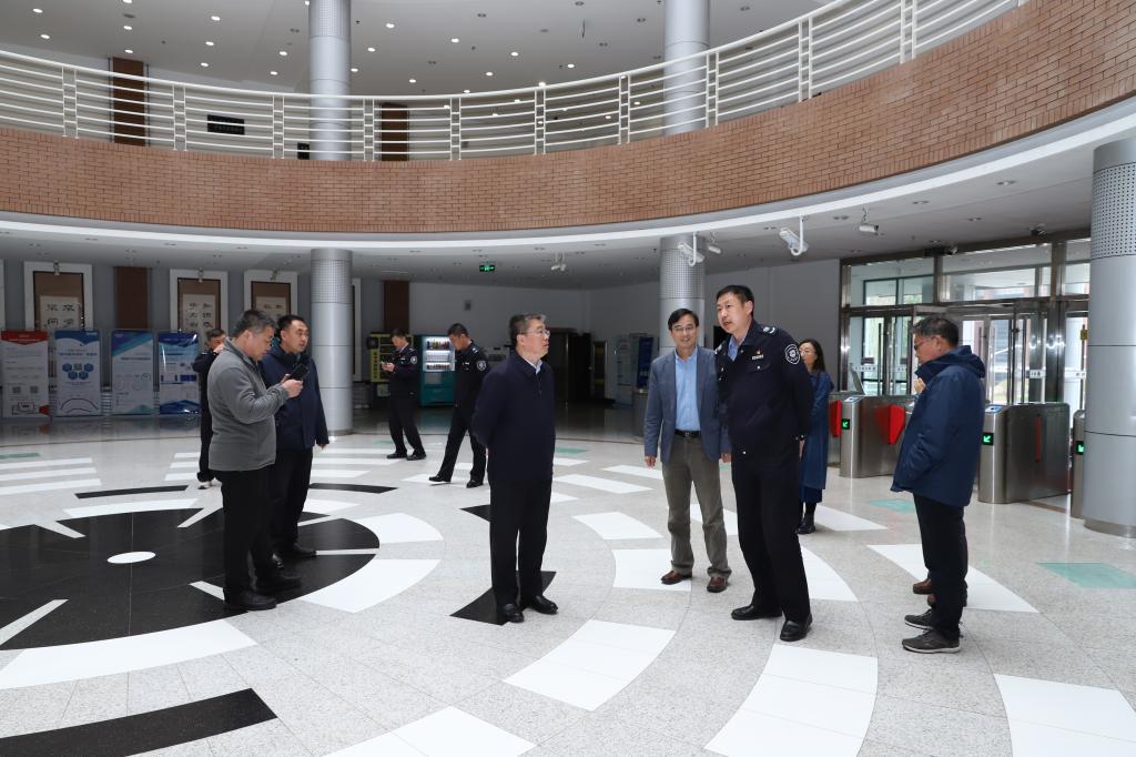 在图书馆,刘鹤一行走访了学生阅览室,询问了配电间管理情况,并提出相关修复要求。在监控控制中心,党委安全保卫部部长桑学江向刘鹤介绍了视频监控点位分布情况、火灾报警系统运行情况和值班人员值守情况。在实验楼,刘鹤检查了UPS间、核心机房和部分实验室,听取了实验实训中心主任孙钦波、信息管理中心副主任张健鹏相关情况汇报。