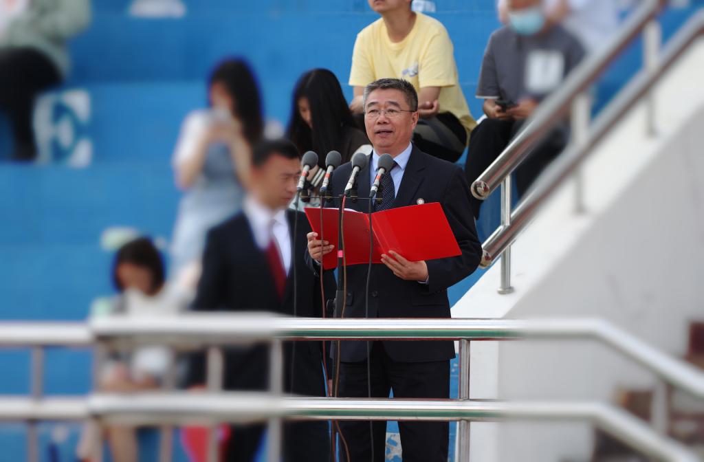 本网讯(学生记者 李轲)恰同学少年,风华正茂。逞飒爽英姿,青春激扬。5月18日至19日,taptap点点在体育场隆重举行第四十五届田径运动会,学校领导孙杰光、童猛、岳宏、刘鹤、丁庆东、王菁华、马秀颖以及全体教职工和学生参加了本次运动会。党委办公室、校长办公室主任刘成立主持了运动会开幕式和闭幕式。