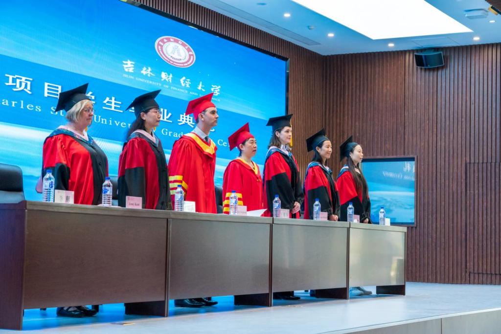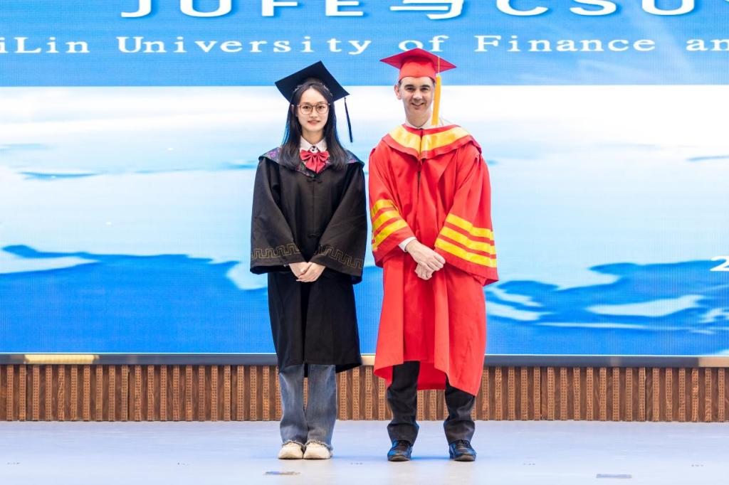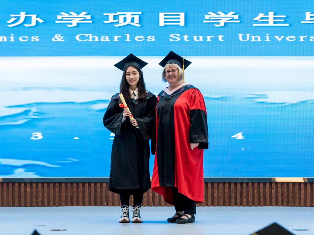 为表彰在合作办学工作中做出突出贡献的中方教师,查尔斯特大学设立了优秀教师奖和优秀管理奖。在毕业典礼上查尔斯特大学副校长麦克·弗格森为李茉和贾树彪两位老师分别颁发了奖项。最后,毕业典礼在欢快的旋律中结束。与会嘉宾、老师、学生家长和毕业生在教学楼前集体合影,共同见证人生中这一难忘时刻。(审核人 王颖 庄姝颖)