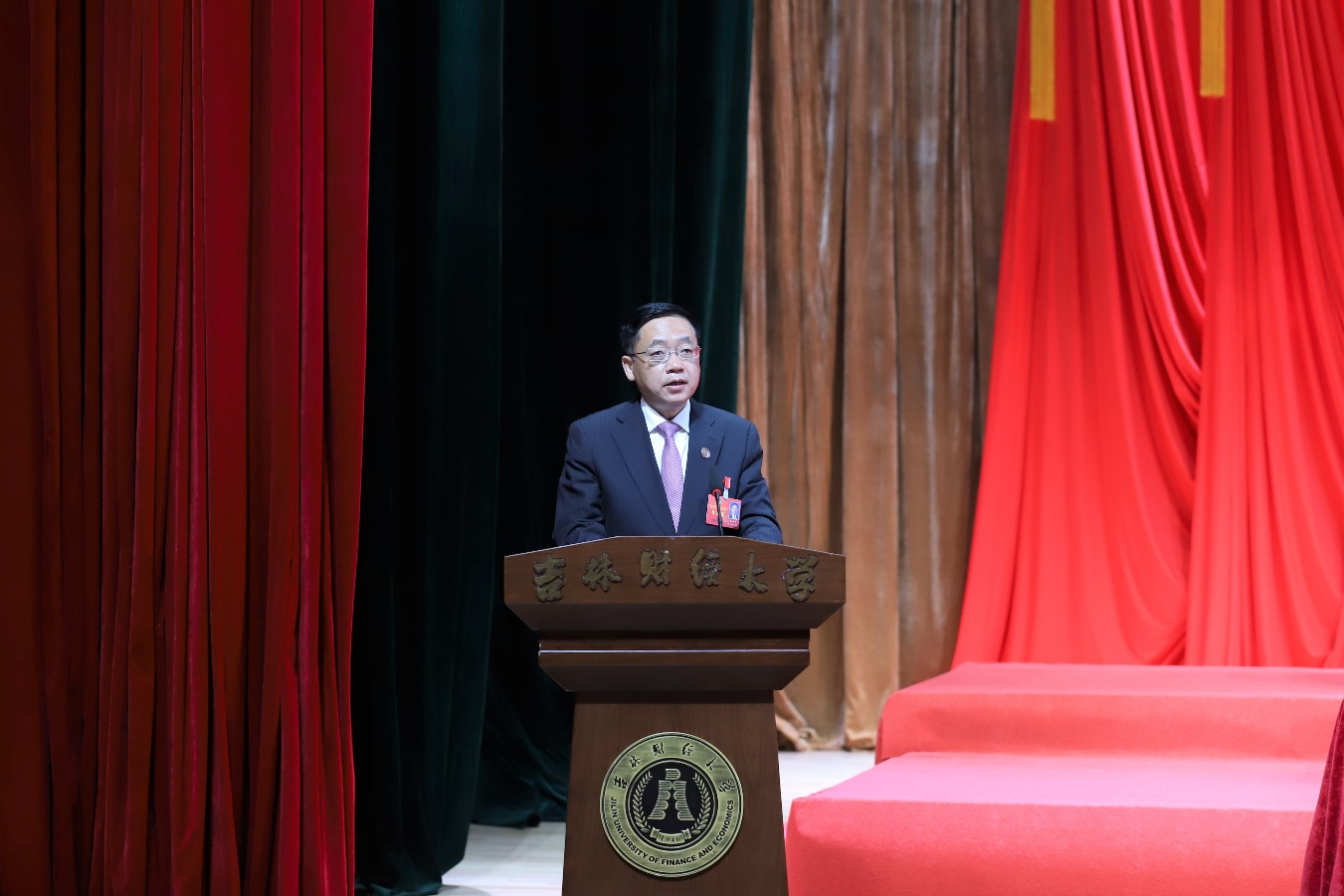 他强调,全校各级党组织、各单位要认真组织学习宣传贯彻好本次大会精神,引导全校师生员工把认识统一到大会精神上来,把力量凝聚到各项任务上来,切实增强贯彻落实、推动高质量发展的自觉性和主动性。一要坚持学习,历练本领,勇于肩负时代新使命。全校上下必须始终坚持把政治建设放在首位,把学习贯彻习近平新时代中国特色社会主义思想主题教育不断引向深入,把不折不扣贯彻落实党的二十大精神和党中央、省委、省政府、省委教育工委、省教育厅及学校党委的决策部署,与推动学校高质量发展紧密结合。要进一步做好“深化”“转化”“强化”文章。要以更高的政治站位,牢牢把握好新时代工会工作的政治方向,以过硬的作风推动各项工作落地见效。二要心系民生,服务发展,努力干出工作新业绩。要进一步提高办学治校的民主化、法治化水平,提升学校治理体系和治理能力现代化水平;进一步完善“党委领导、行政支持、工会运作、各方配合”的工作机制,不断推进“双代会”工作制度化、规范化、科学化,切实保障教职工合法权益,真正把民主管理落到实处。三要凝心聚力,真抓实干,奋力开创高质量发展新局面。要通过专题研究、定期调度和推进办理等工作机制,高度重视和着力落实好“双代会”的提案研究、回复反馈及问题解决等工作;要专门学习领会本次大会精神和要求,以“新气象、新作为”和履职尽责的实际成效体现责任担当。他号召,全校上下要把思想行动统一到学校的决策部署上来,把智慧力量凝聚到实现会议提出的目标和任务上来,把价值追求融入到学校高质量发展要求上来,树牢“一盘棋”思想,真正心往一处想、劲往一处使、拧成一股绳,在学校党委的正确领导下,明确改革发展的“总基调”“施工图”,画好团结奋斗的“同心圆”,奏响实干苦干的“最强音”,以学校事业高质量发展的新成效,书写建设教育强省和教育强国的吉财答卷!