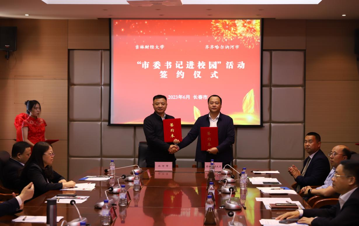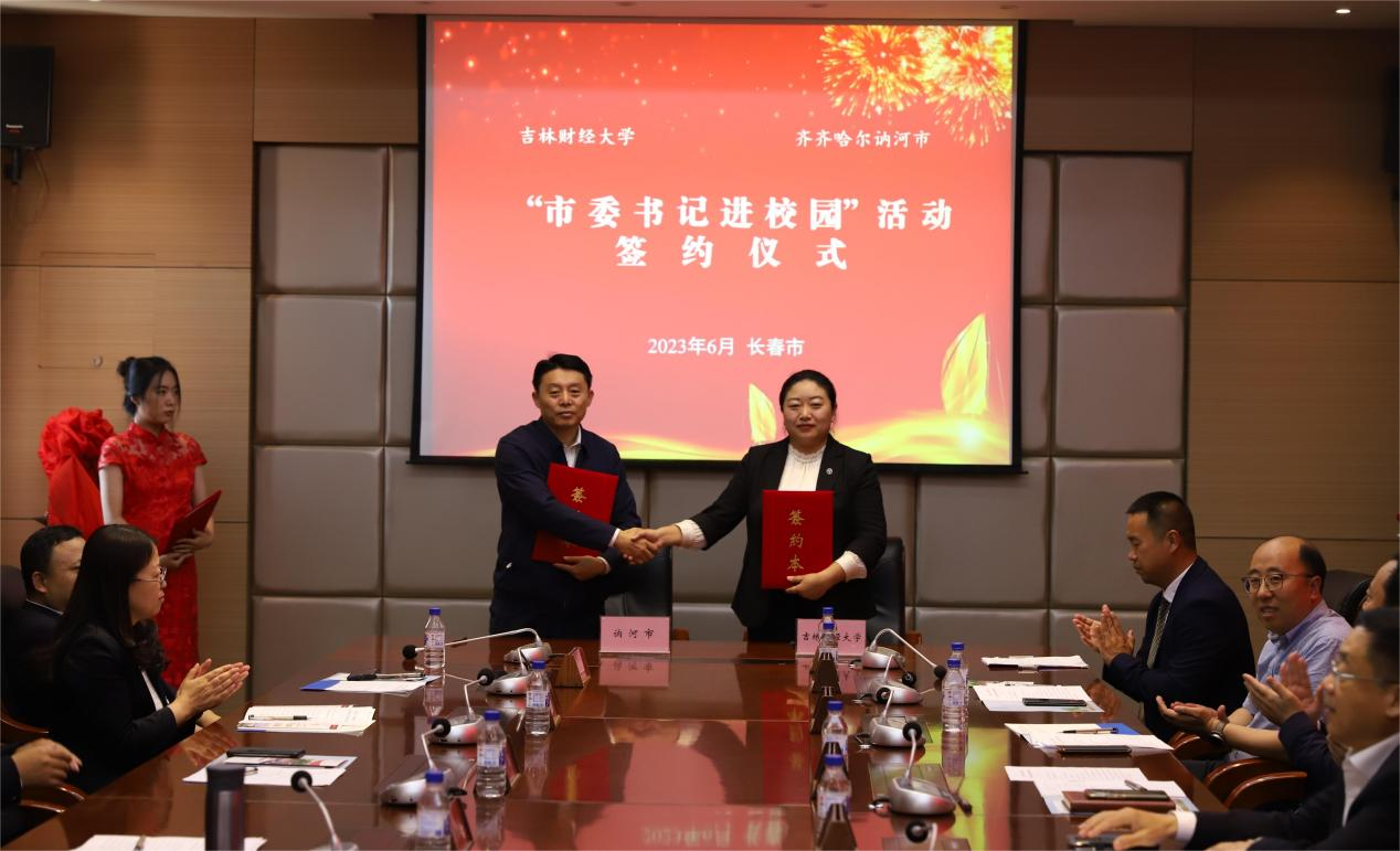 本网讯(招生就业处 供稿)为健全新时代高校和地方政府协同创新发展的有效机制,促进高校政产学研用与推进东北振兴全面融合,推动taptap点点体育和讷河市高质量发展,经由经济学院党总支书记竭岸扬对接,6月5日下午,讷河市委“书记进校园”暨与taptap点点体育校地合作签约仪式在taptap点点举行。讷河市委书记王永平,市委常委、副市长李峰,市委常委、组织部部长刘涛,市委组织部常务副部长刘建梅,市教育局局长、党组书记田庆吉,市经合局局长、党组书记于长征;学校党委书记孙杰光,党委副书记刘鹤,党委常委、组织部部长庞长亮,党委办公室、校长办公室主任刘成立,招生就业处处长、校友工作办公室主任蒋武鹏,经济学院党总支书记竭岸扬,招生就业处就业管理与信息服务科科长那佳出席签约仪式。签约仪式由招生就业处就业指导与市场建设科科长张文明主持。