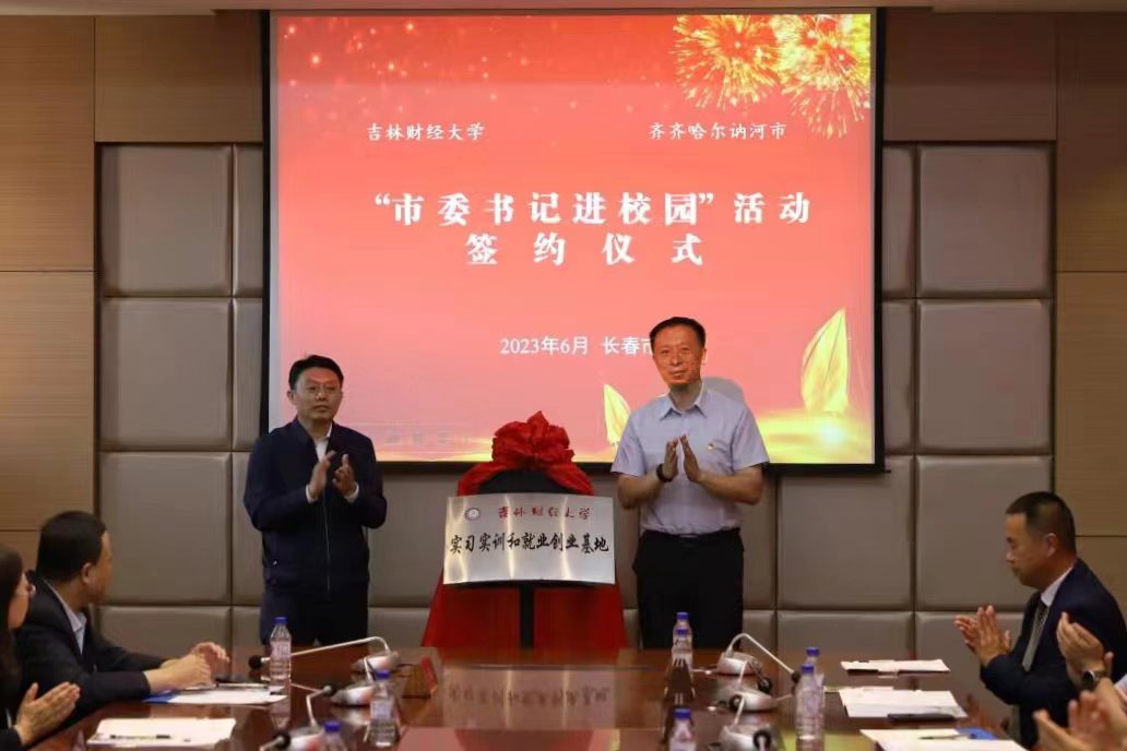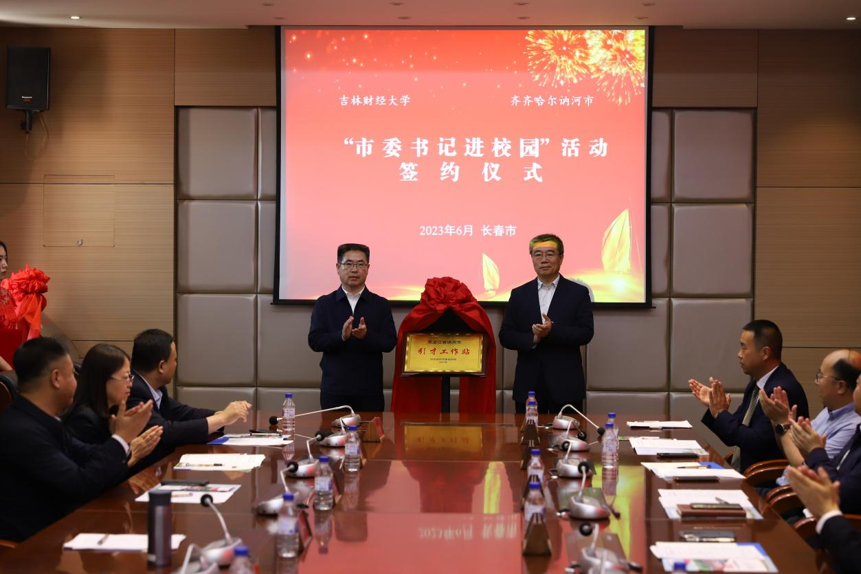 签约揭牌仪式上,李峰与蒋武鹏代表双方签署了市校战略合作框架协议,刘涛与那佳代表双方签署了实习实训就业创业基地协议。王永平与刘鹤共同为“黑龙江省讷河市毕业生人才工作站”揭牌,刘涛与庞长亮共同为“taptap点点体育实习实训和就业创业基地”揭牌。(审核人 蒋武鹏)