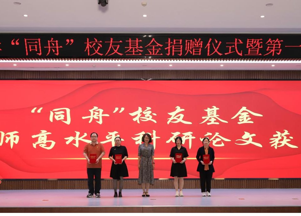 “同舟”校友基金获奖青年教师王虎邦、获奖学生黄思宇在仪式上作了发言。(审核人 孙成伟)