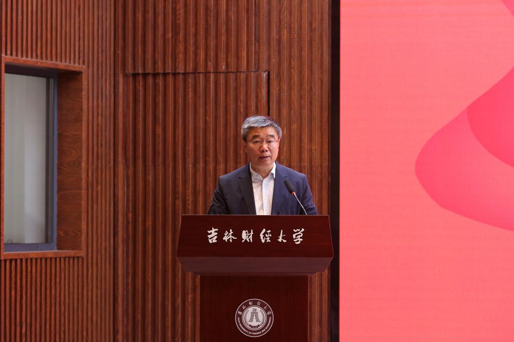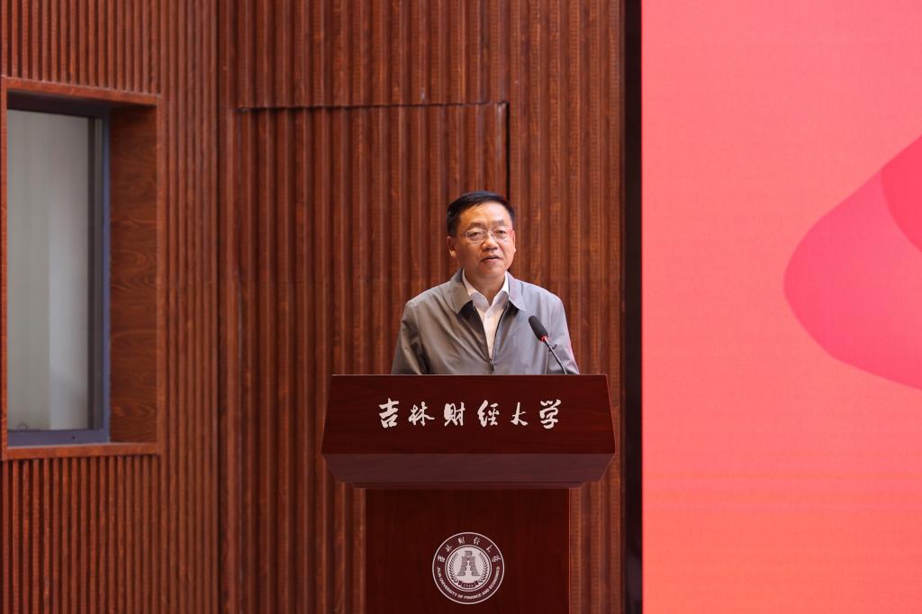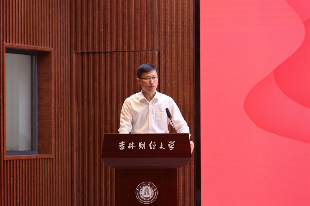 党委书记孙杰光代表学校致辞,他对返校校友代表表示热烈欢迎,对统计校友,特别是为“同舟”校友基金付出努力和心血的校友表示崇高的敬意和美好的祝愿。他指出,两年前,统计807班窦金歆校友发起成立“同舟”校友基金,李世杰、马敏娜、楚东宁、盛学识等校友积极响应,捐资200万元专项用于统计学院的教学科研和人才培养,这是学校历史上专项捐赠学院额度最大的基金支持。这次发放20万用于奖励在统计学科建设中表现突出的教师,和学业优秀的学生,以及在求学过程中遇到困难的学生。他简要介绍了统计学院和学校近两年的发展情况。他强调,“同舟”校友基金的设立是统计校友对母校的深情厚意,既彰显了他们积极支持母校教育事业发展的高尚情怀,又为广大校友做出了表率,希望获奖师生以今天到会的各位杰出校友为榜样,做有大德大爱大情怀之人。他号召,老师聚焦主责主业,成为精研学术、精心育人的大先生;学生心怀“国之大者”,努力成长为堪当民族复兴大任的时代新人,共同为谱写建设国内一流财经大学新篇章作出新的更大贡献。