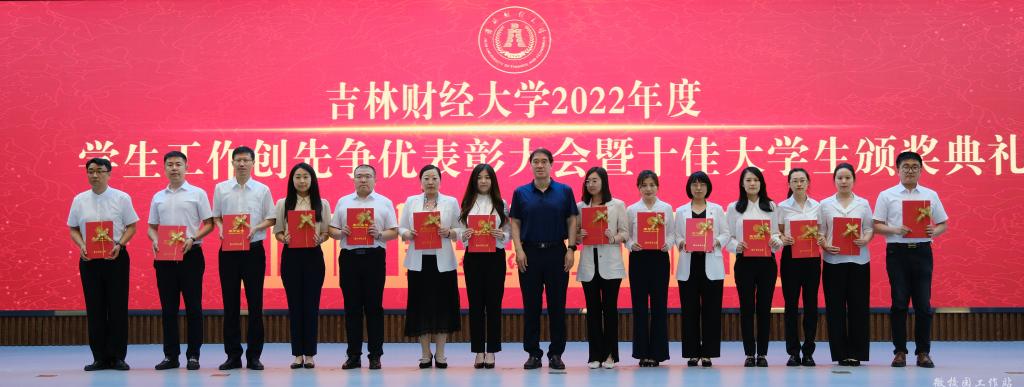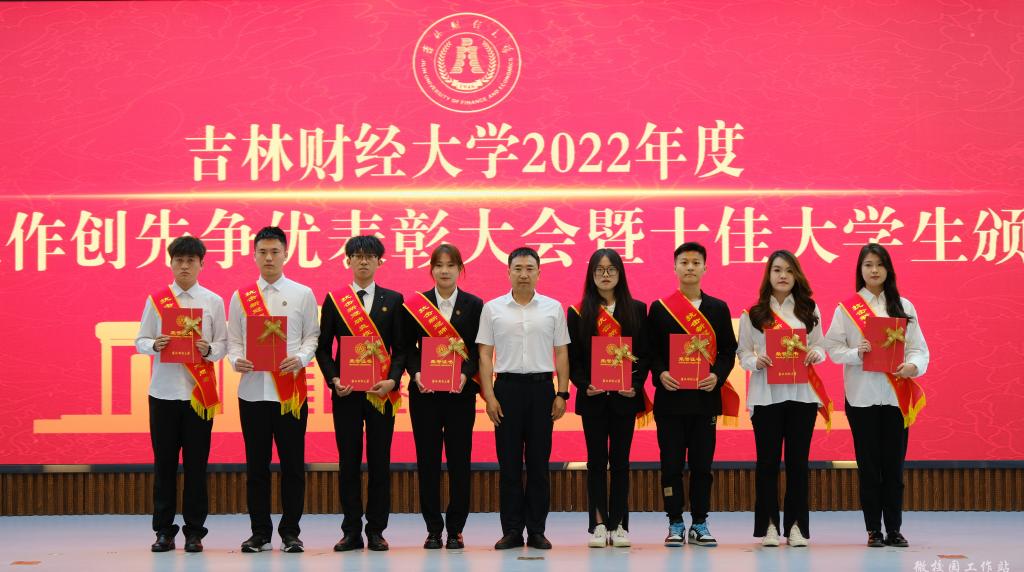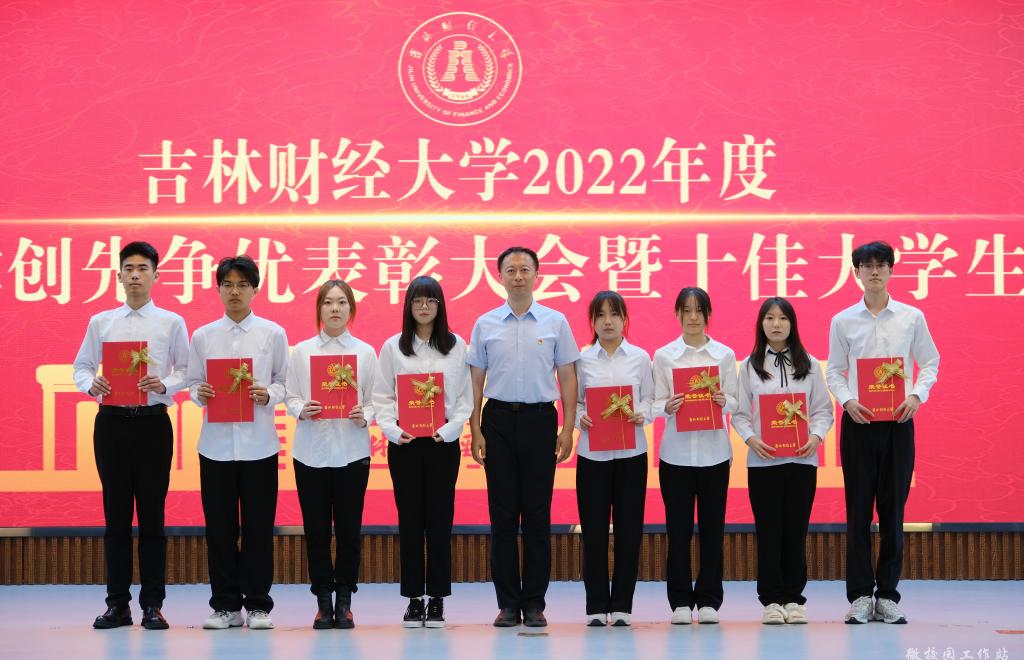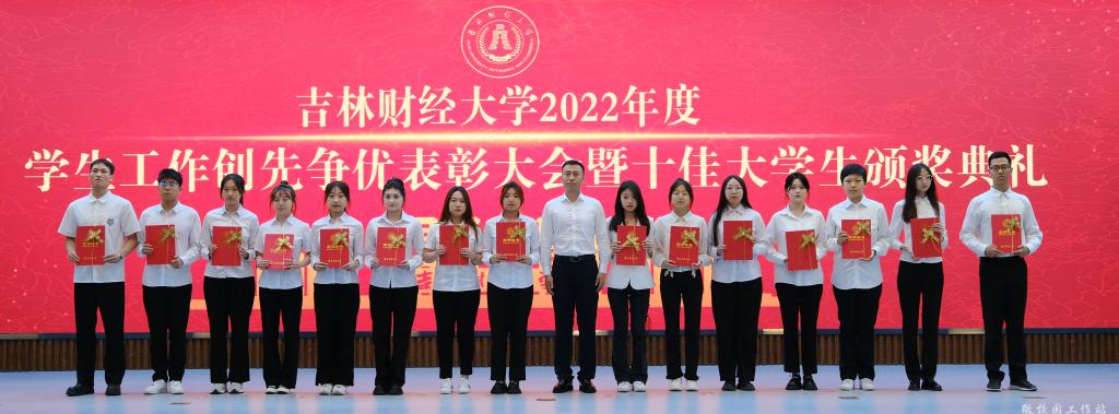 最后,孙杰光发表了热情洋溢的总结讲话。他首先对获得表彰的学生和集体以及当选十佳大学生的各位同学表示热烈的祝贺,向长期奋战在育人工作第一线的学工队伍表示衷心的感谢,向始终关注学校建设发展、为同学们的成长成才呕心沥血的家长们送去诚挚的问候。随后,他饱含深情的回顾了在2022年的校园疫情防控工作中,吉财学子面对风险挑战,不畏艰难,冲锋在疫情防控第一线上的感人事迹;高度肯定了全体学工人在校园疫情防控期间表现出特别能吃苦、特别能战斗、特别能奉献、特别能担当的精神。最后,他向大家提出了三点希望,一是要坚定理想信念,让奋斗的脚步更稳。要深刻领悟“两个确立”的决定性意义,增强“四个意识”、坚定“四个自信”、做到“两个维护”;做到理想坚定、信念执着、不怕困难、勇于开拓,一步一个脚印,向着美好未来和最高理想勇敢前进。二是要勇于担当使命,让奋斗的后劲更足。希望同学们不虚度光阴、不逃避困难,担使命、扛责任、求学问、练本领,在与国家同发展、与时代同进步的征程中,收获自己的成功。三是要矢志笃行实干,让奋斗的底色更亮。要深刻领会习近平总书记给中国农业大学科技学院同学的重要回信精神,发扬“自找苦吃”的奋斗精神,将“远大抱负”与“脚踏实地”结合起来,把理想抱负落到实际行动之中,在人生的赛道上跑出更好成绩。