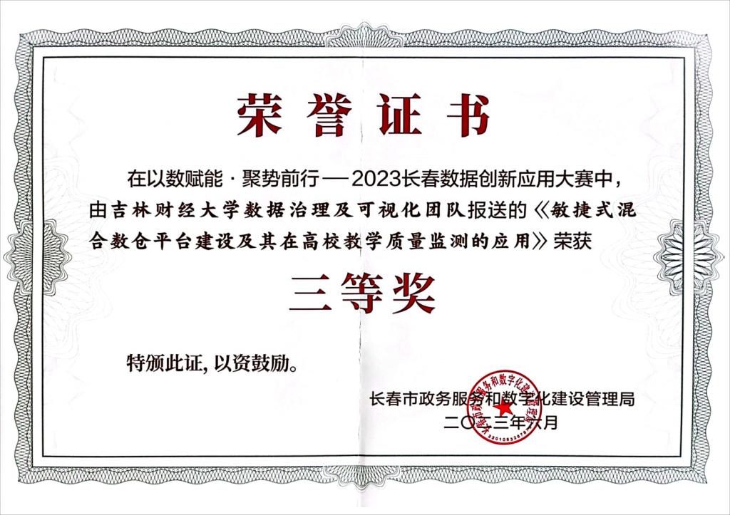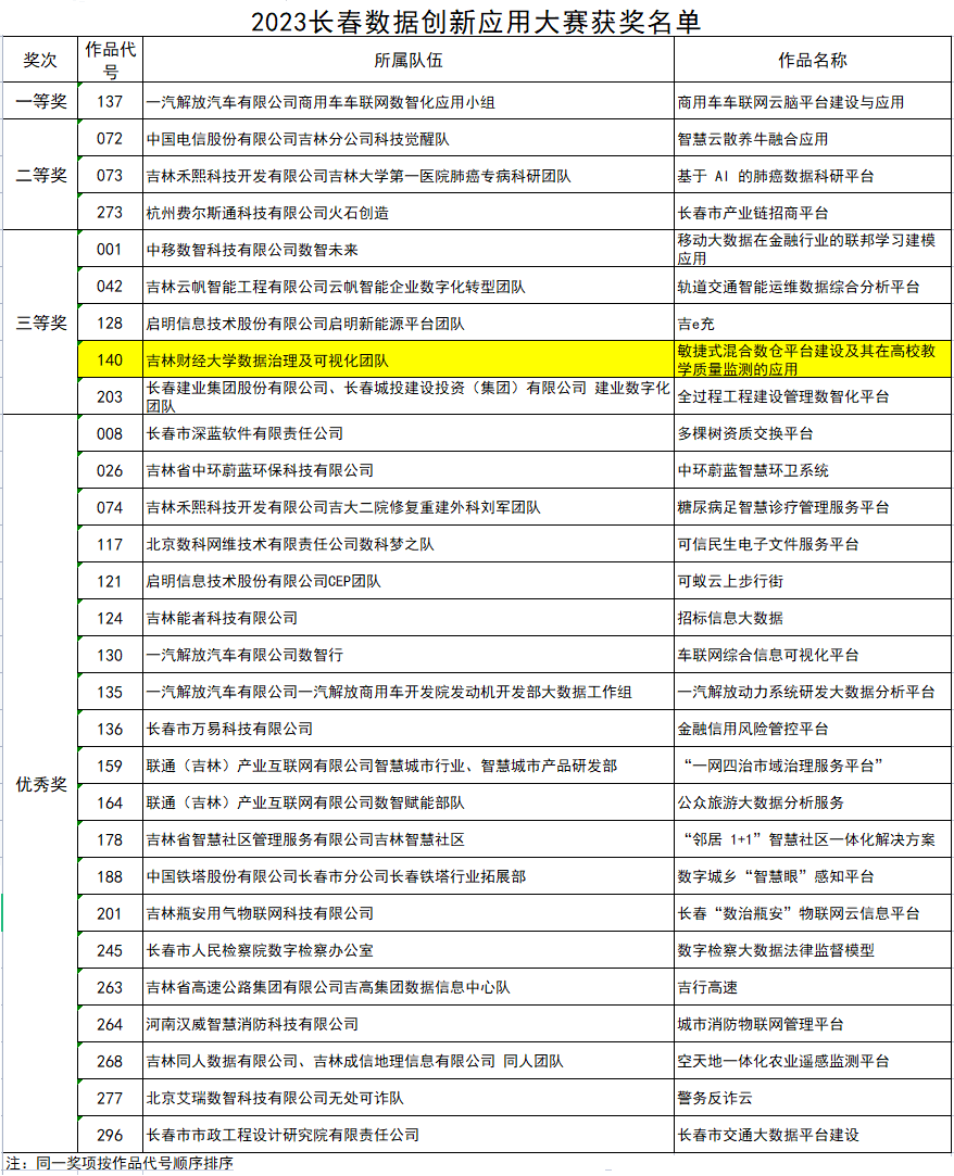 2023长春数据创新应用大赛以“以数赋能,聚势前行”为主题,由长春市政务服务和数字化建设管理局与长春净月国家高新技术产业开发区共同主办。大赛以长春市实际需求为导向,充分发动社会力量,在数字治理和数字经济领域大力开展数据创新应用,提升治理体系和治理能力现代化水平,面向全国各企业、高校及科研院所、社会团体发出邀请,近300支团队参加,在3月28日至6月21日期间,历经初赛、 复赛、 决赛3个阶段,最后决出一等奖1名、 二等奖3名、 三等奖5名、 优秀奖20名。(审核人 孙钦波)