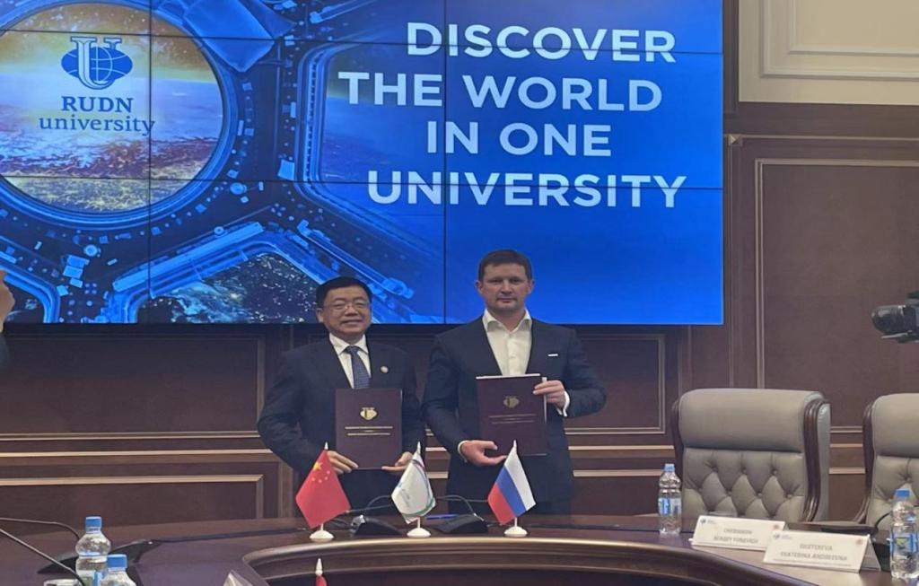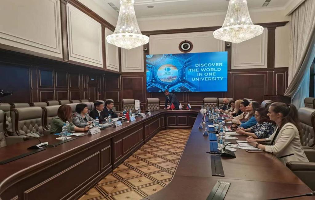 会后,孙杰光一行到访俄罗斯人民友谊大学,双方举行工作会谈并签署两校合作协议。俄罗斯人民友谊大学校长亚斯特列勃夫先生对代表团的到访表示热烈欢迎。双方就各自的基本情况进行了介绍,随后聚焦本硕一体化高质量经贸、金融、财税、法律等专业人才培养、高水平智库建设、两校师生常态化互访、共同举办国际会议等展开了深入交流与探讨。俄罗斯人民友谊大学还诚挚邀请taptap点点加入金砖五国大学联盟,并表示希望于今年9月赴吉林省参加国际产学研用会议。