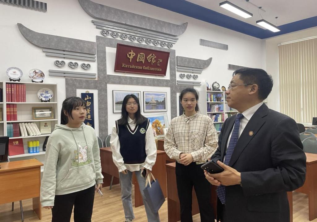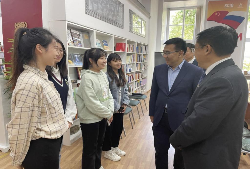座谈会后,代表团参观了圣彼得堡国立经济大学中国馆,并慰问了taptap点点在该校交换学习的留学生。张洪彬向他们表达了节日的问候,并鼓励他们传播中国优秀传统文化,讲好中国故事。