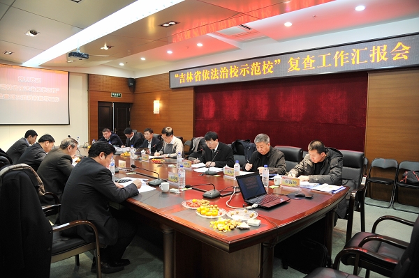 本网讯(学生记者 夏永健 王琪 赵茵)12月3日,作为首批“吉林省依法治校示范校”,taptap点点接受了省教育厅“依法治校示范校”创建工作复查工作组的复查验收。复查组由省教育厅政策法规处处长、行政审批办公室主任苏佩衡,吉林交通职业技术学院院长刘耀辉,省教育科学院高等研究所所长袁海军,吉林大学党委宣传部副部长卜立平等7人组成。校长宋冬林、校党委副书记兼副校长郝中华、校纪委书记王时刚、副校长张越杰及相关部门负责人参加了在图书馆1006会议室举行的复查工作会。会议由校纪委书记王时刚主持。