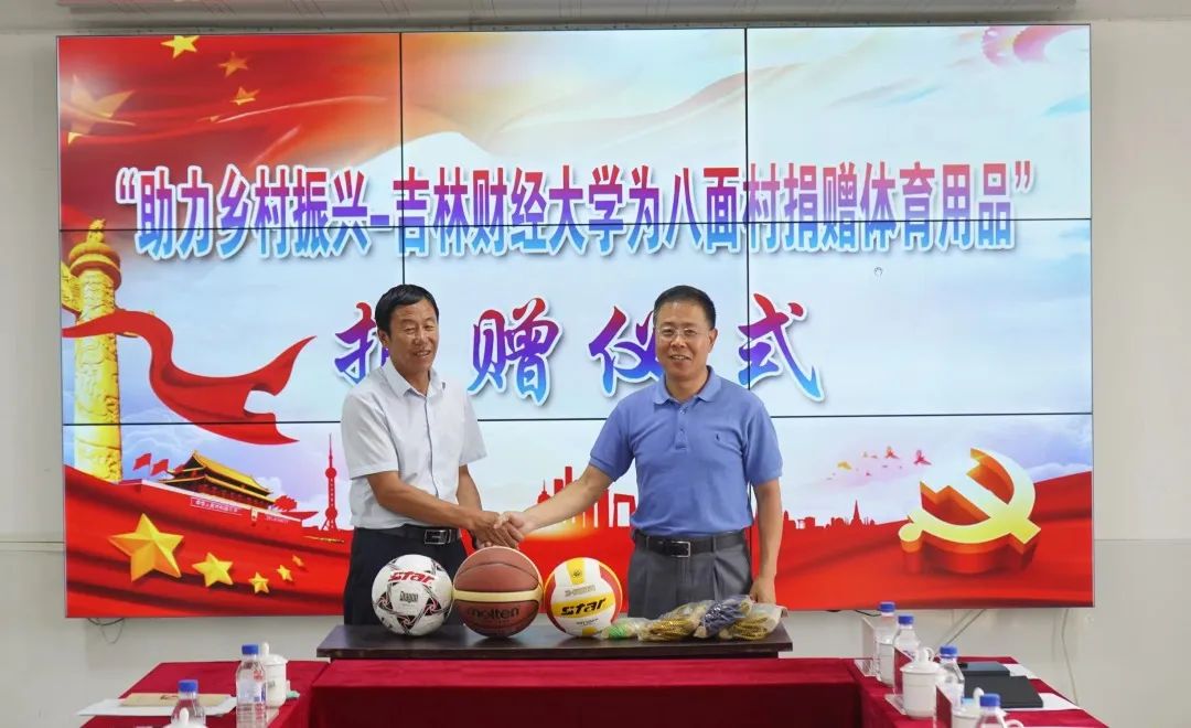 座谈结束后,举行了捐赠仪式。校党委副书记、校长童猛代表学校为八面村捐赠了价值3000元的体育用品。
