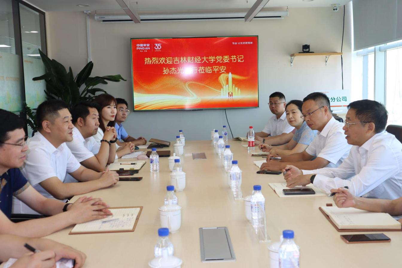 本网讯(金融学院 供稿)8月24日上午,由校党委书记孙杰光带队,金融学院党委书记王利国、院长王丽颖、副院长刘淼、学院党委副书记刘士明、保险系主任刘琳琳和副主任李新光赴中国平安财产保险股份有限公司吉林分公司进行座谈交流和访企拓岗。平安产险吉林分公司总经理曹旭、副总经理邵强、人事行政部经理胡航等接待并出席座谈会,双方就开展新一轮全面战略合作进行了深入交流。