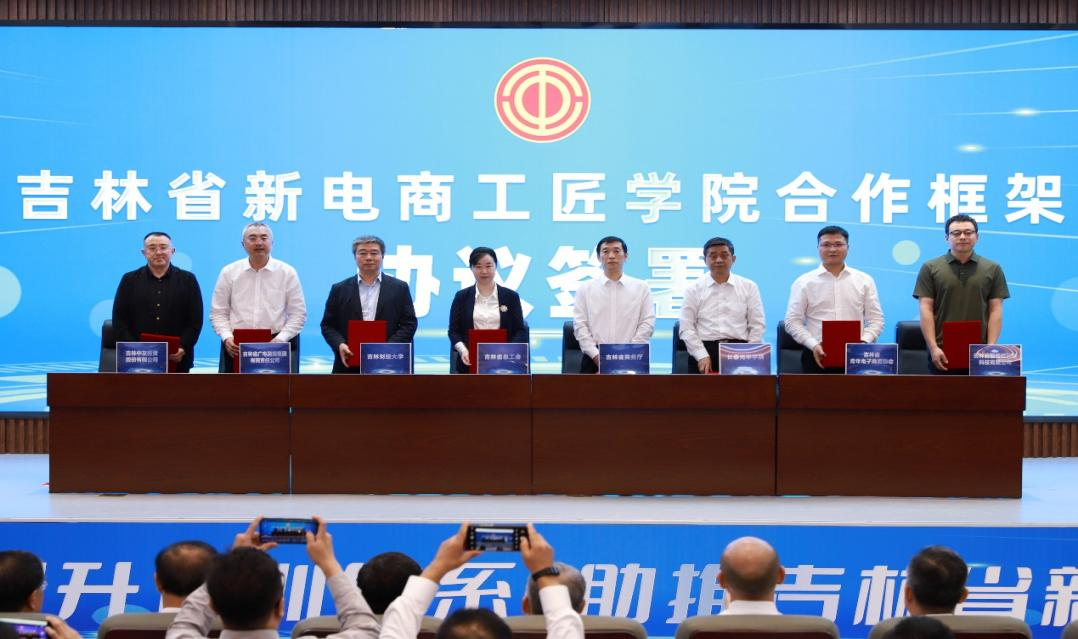 吉林省总工会、吉林省商务厅、taptap点点体育、长春光华学院、吉林省广电融媒集团有限责任公司、吉林省青年电子商务协会、吉林中友投资股份有限公司、吉林省智辉供应链科技有限公司八家合作单位代表上台签署了《吉林省新电商工匠学院合作框架协议》。