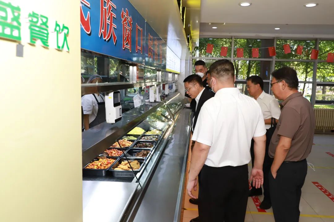 校领导一行先后来到第一教学楼、第一食堂、泵房、学生宿舍、商服中心、浴池、校医院、外事楼、图书馆,督查学校基础设施工程收尾工作、食堂食品卫生建设工作、学生宿舍“三防”和部分学生搬寝工作、迎新卫生医疗保障工作等。走访中,校领导要求有关职能部门要加快新建工程的扫尾进度,持续完善配套基础设施建设,全力打造安全舒适、干净美丽的校园环境,确保新学期教育教学工作顺利开展;要加强食堂从业人员健康管理、食品原料采购管理、加工制作过程、明厨亮灶建设,现场听取关于食堂监管措施、菜品种类、饭菜价格以及应急措施的汇报;要时刻关注学生宿舍安全,持续做好校园内及学生宿舍楼安全生产大检查大排查,时刻绷紧“安全弦”、织密“责任网”,把好“安全关”、守好学生的“平安线”;要全力做好迎新医疗相关工作,做好医疗设备配置和医护人员配备,为保护好学生和教职工的健康安全提供医疗健康保障。