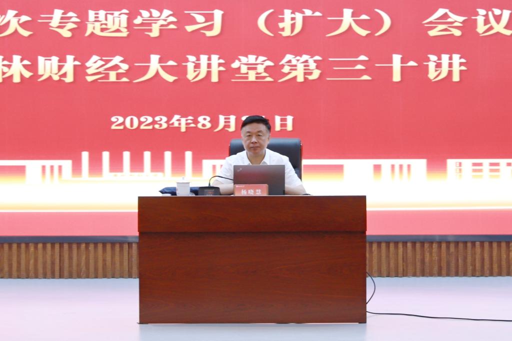 孙杰光在主持中指出,杨晓慧教授的报告具有很强的政治性、思想性、理论性和指导性,是深入系统学习贯彻习近平新时代中国特色社会主义思想和习近平总书记关于教育重要论述的政治理论课,也是全校党员干部和广大教师的新学期“开学第一课”。他强调,要把学习贯彻习近平总书记关于教育的重要论述和学习贯彻习近平经济思想、法治思想、生态文明思想、强军思想和外交思想贯通起来;与学习贯彻习近平总书记在中央政治局第五次集体学习会议上的重要讲话精神贯通起来;与学习贯彻习近平关于东北振兴的重要论述和视察吉林重要讲话重要指示精神贯通起来;与学习贯彻落实省第十二次党代会和省委十二届二次、三次全会精神贯通起来;与落实好学校第二次党代会精神和十四五规划、全年重点任务目标贯通起来,时刻用党的创新理论武装头脑、指导实践、破解难题、推动工作,学有所思、学有所获,学以致用。他要求,围绕学习习近平新时代中国特色社会主义思想和习近平总书记关于教育的重要论述,一要切实提高政治站位,深入学习领会和全面准确把握科学内涵和精神实质;二要认真落实立德树人根本任务,为党、为国,为区域经济发展培育财经英才;三要全力加强干部人才教师队伍建设,打造一支高素质专业化的干部人才教师队伍;四要坚持把改革作为根本动力,以改革激发高质量发展的生机活力;五要践行以人民为中心的发展思想,用心用情用力解决教职员工的民生实事;六要加强党对学校的全面领导,加强两级班子建设和基层党组织建设,深入落实全面从严治党的各项要求,以伟大自我革命引领伟大社会革命,牢记作风建设永远在路上。他要求,全校上下要切实把学习成效转化为推动学校事业高质量发展的强大力量和生动实践,在中国式现代化进程中为推动吉林全面振兴取得新突破,奋力谱写国内一流财经大学的新篇章。
